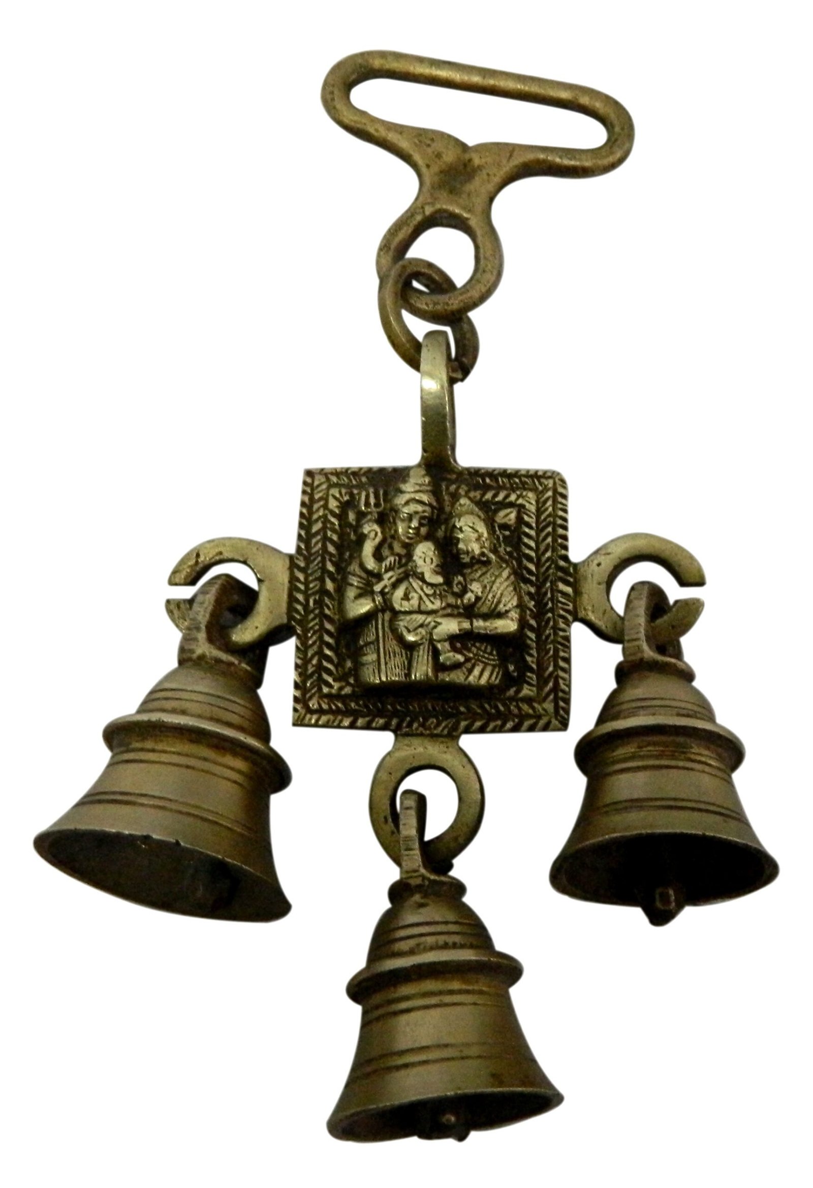 Keywords: brass Shiva family bell, Shiv Parivar hanging bell, pooja bell, Lord Shiva decor, temple bell.