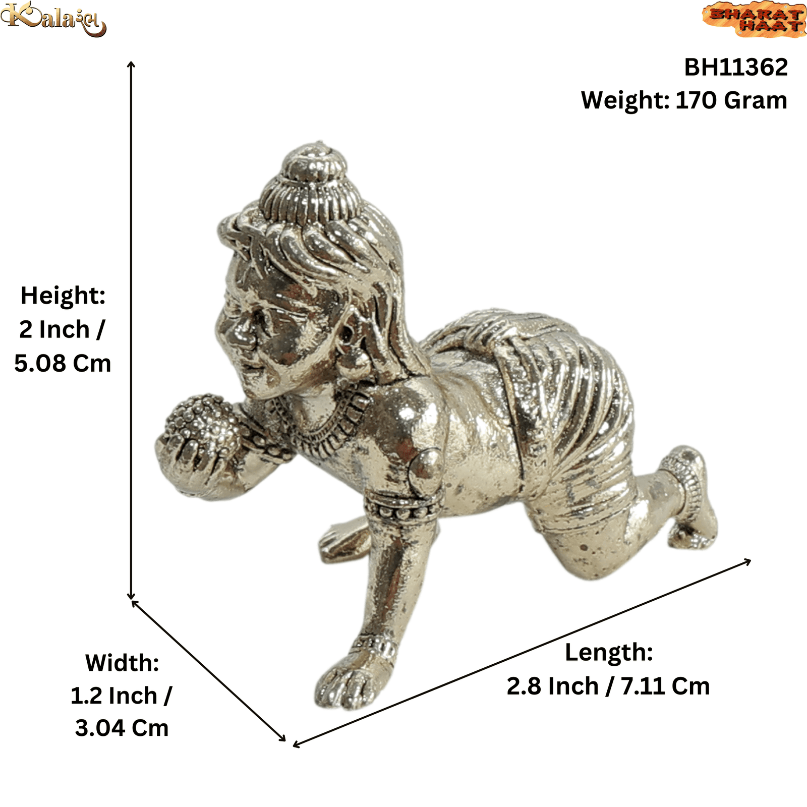 Made from high-quality brass, the idol features intricate detailing of Bal Krishna’s posture, attire, and expressions, reflecting traditional Indian craftsmanship. Measuring 2.8 x 1.2 x 2 Inch (7.11 x 3.04 x 5.08 cm) and weighing 170 grams, it is compact, durable, and easy to place in any space while ensuring a solid feel.