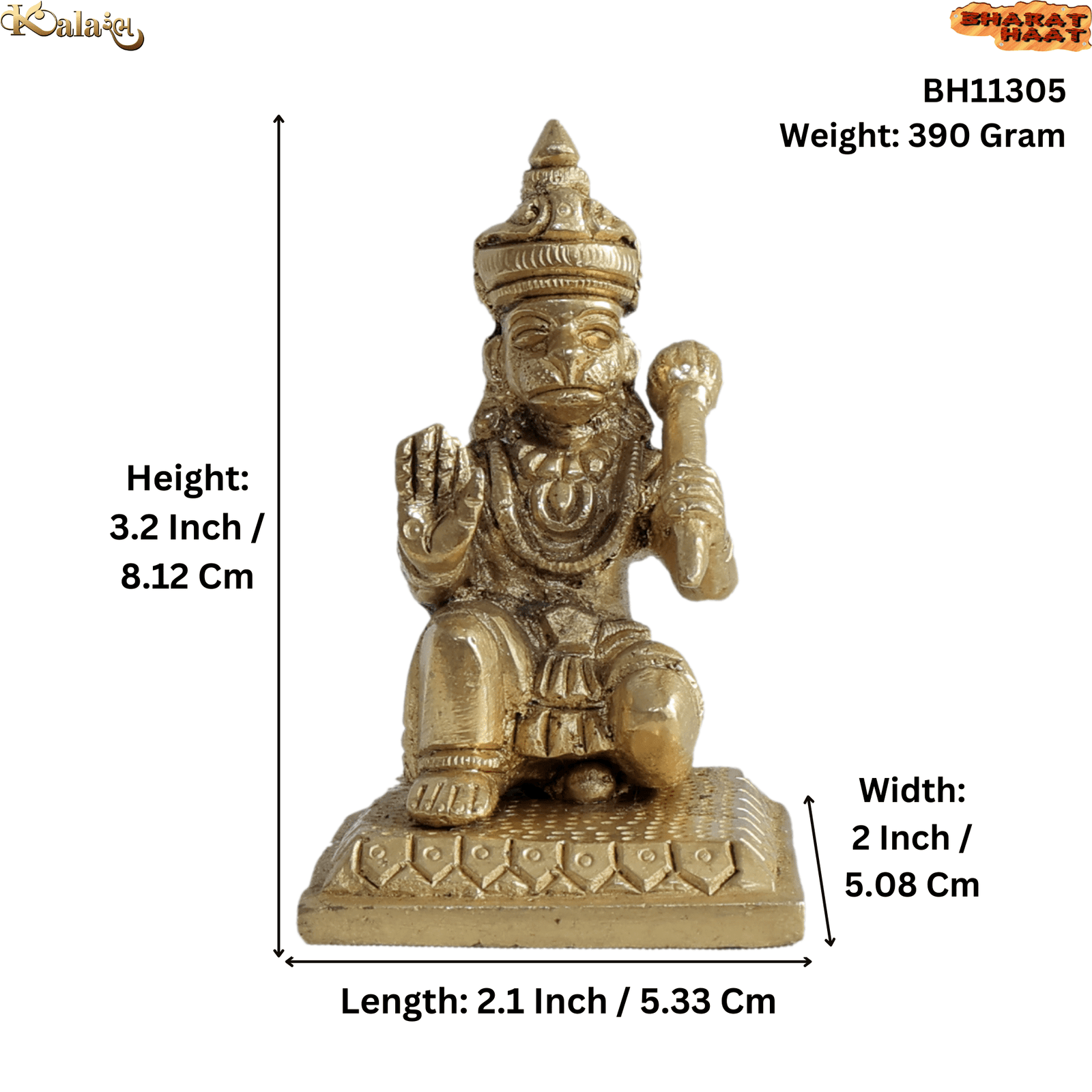 Crafted from premium-quality brass, this Hanuman Ji murti features fine carvings, intricate detailing, and a polished antique finish. Its size—2.1 x 2 x 3.2 Inch (5.33 x 5.08 x 8.12 cm)—makes it ideal for placing in home temples, car dashboards, office desks, study tables, or gifting. Despite its small size, the idol has a solid and durable build with a weight of 390 grams, ensuring stability and long-lasting quality.
