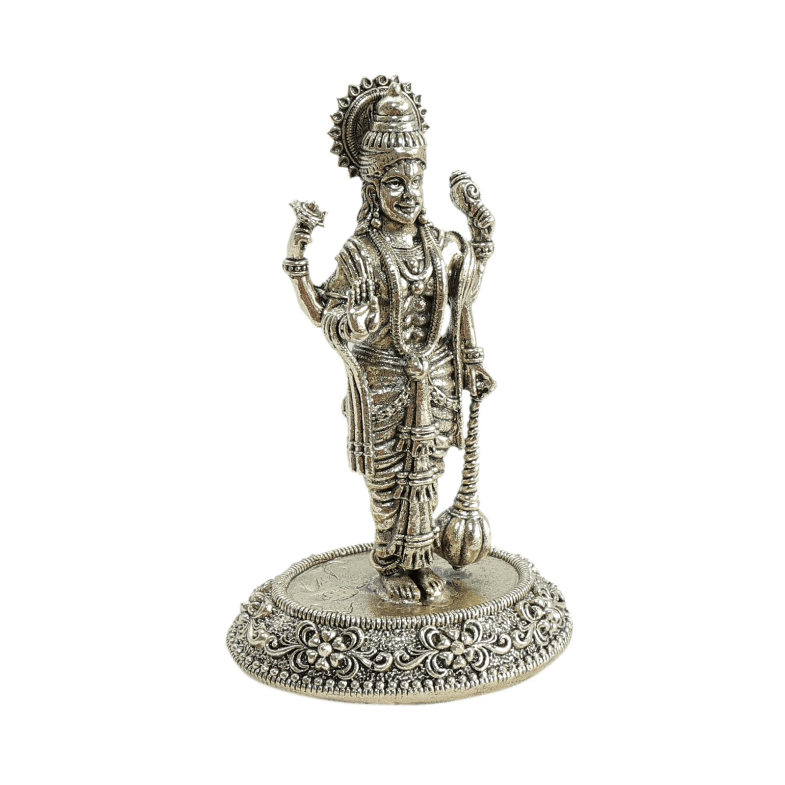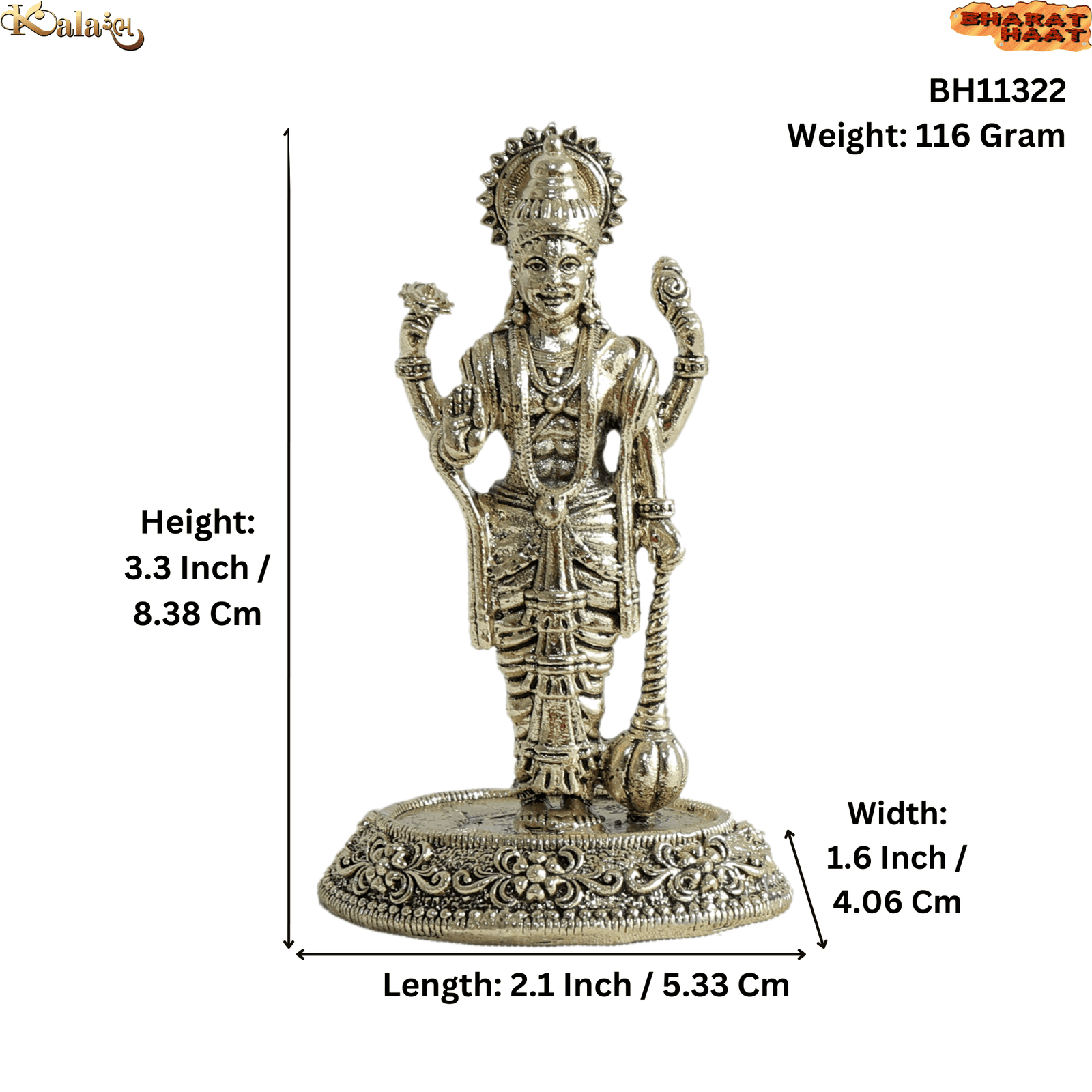 Expertly handcrafted from premium-quality brass, the idol showcases intricate detailing of Lord Vishnu’s posture, ornaments, and facial expressions. The antique finish enhances its traditional appeal, making it a timeless spiritual décor piece. With dimensions of 2.1 x 1.6 x 3.3 Inch (5.33 x 4.06 x 8.38 cm) and a weight of 116 grams, it is small, sturdy, and easy to place anywhere.