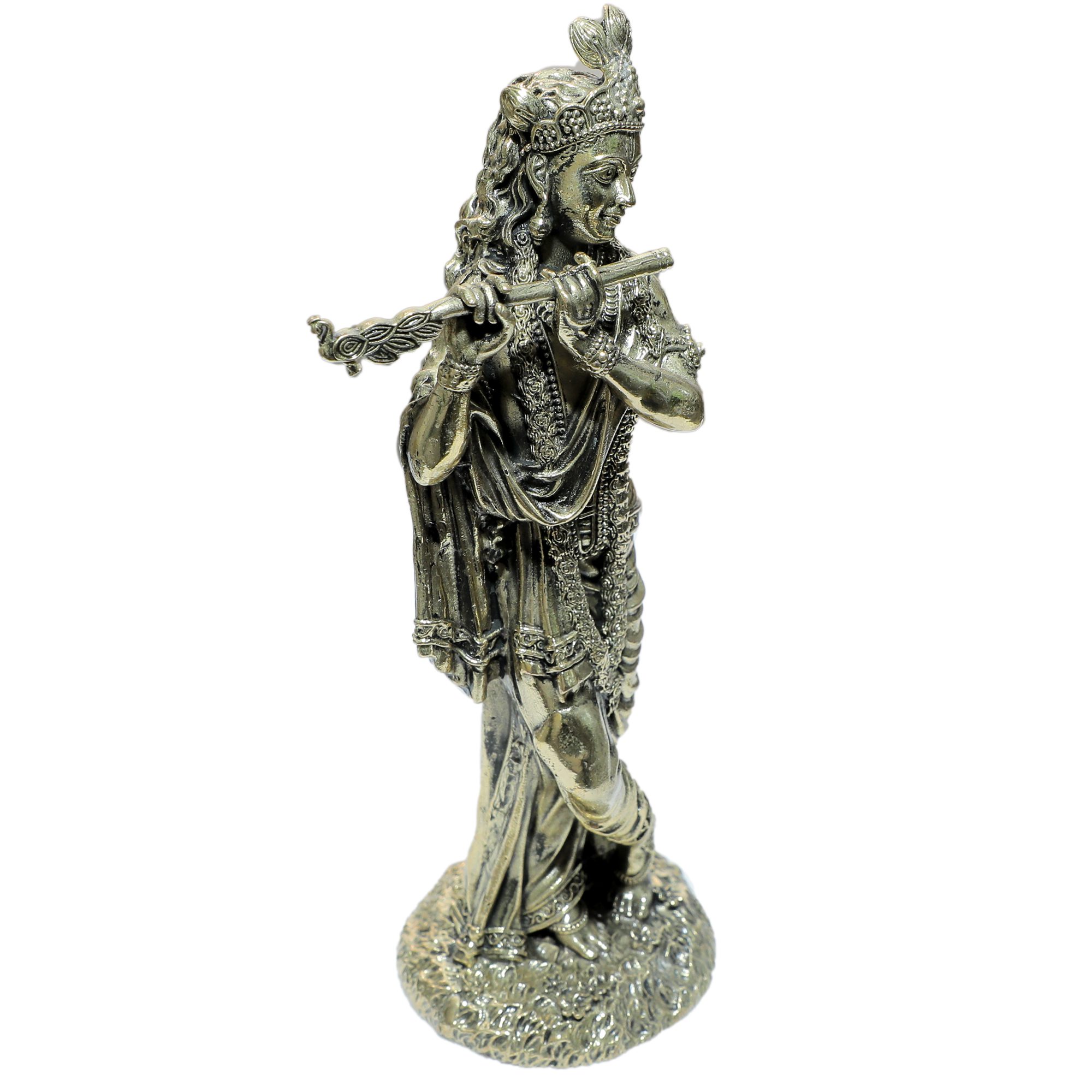 Expressive Posture: The tribhanga stance and lifelike flute-playing pose evoke Krishna’s playful, musical nature.