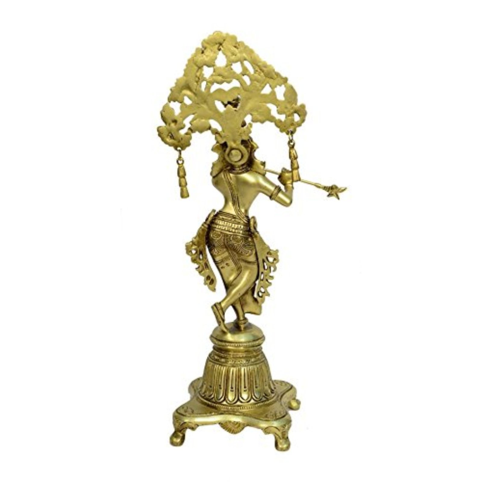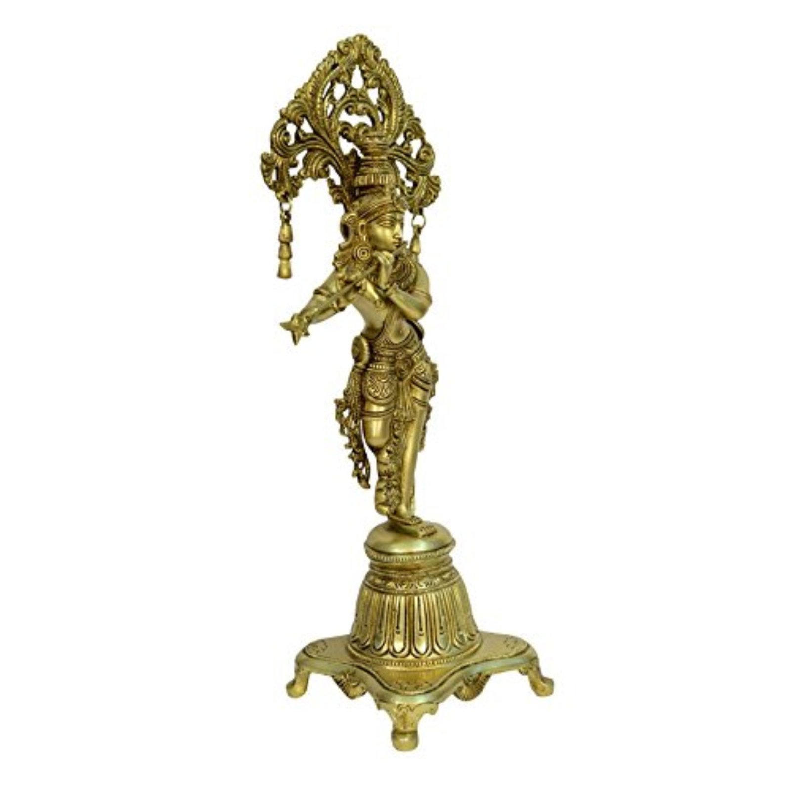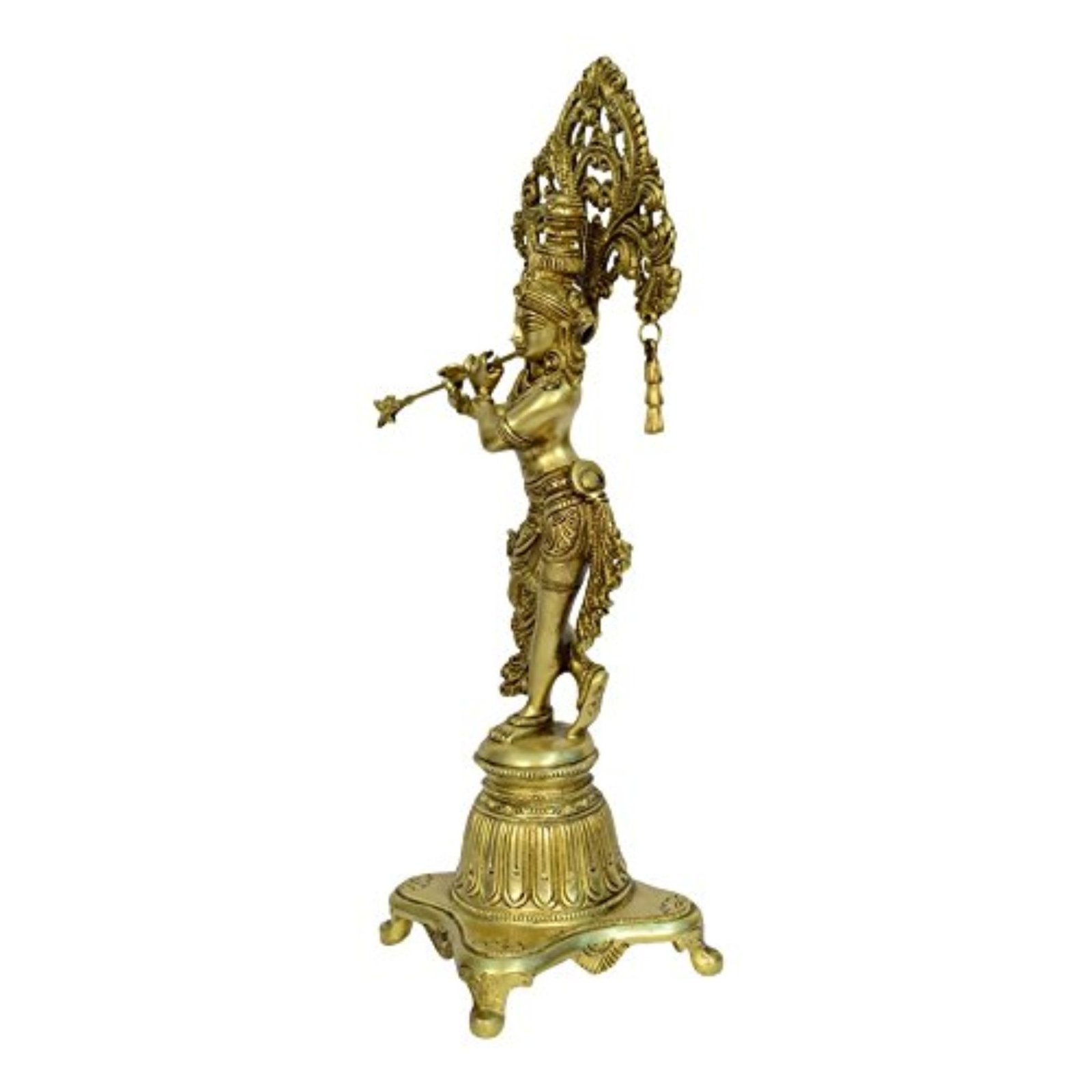 Brass Unique Standing Krishna with Decorative Jali Work Art By Bharat Haat