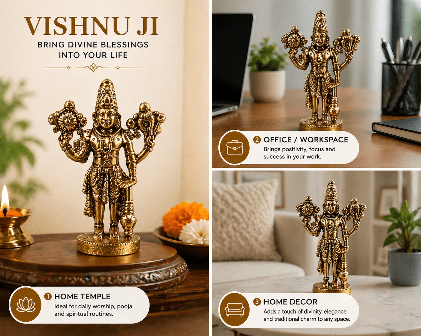 The Brass Vishnu Ji Idol is also a thoughtful and meaningful gift for occasions like housewarming, festivals, weddings, and corporate gifting. Its spiritual significance combined with elegant design makes it a perfect choice for loved ones.