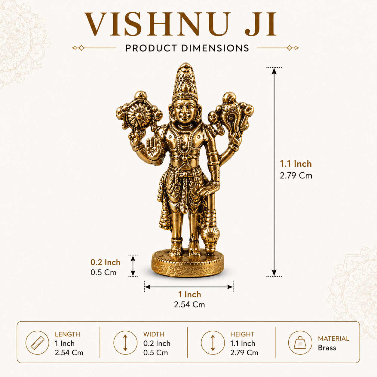 Brass vishnu ji 1.1 inch Bring divine energy and spiritual elegance into your space with this beautifully crafted Brass Vishnu Ji Idol, a symbol of protection, prosperity, and balance. This exquisite brass Vishnu ji statue represents Lord Vishnu, the preserver of the universe, making it a powerful addition to your home temple, office, or décor collection.