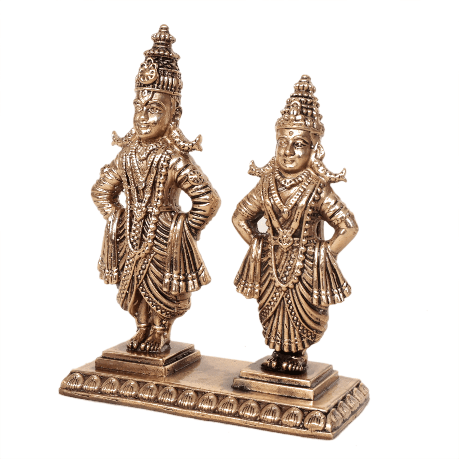Brass Vitthal Rukmani Idol – Sacred Vithoba Rukmini Murti for Pooja, Home & Temple Décor