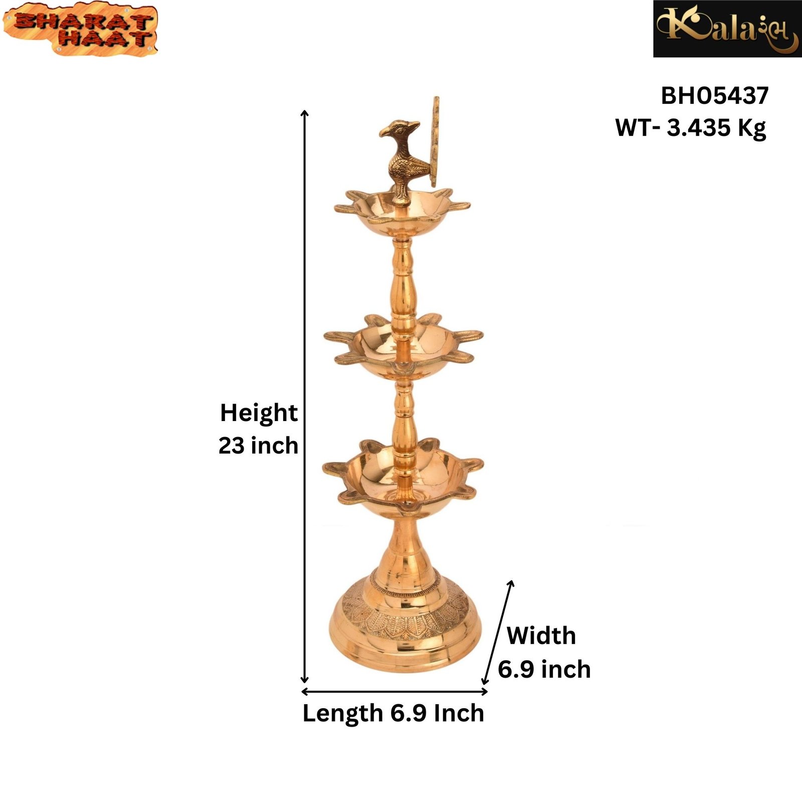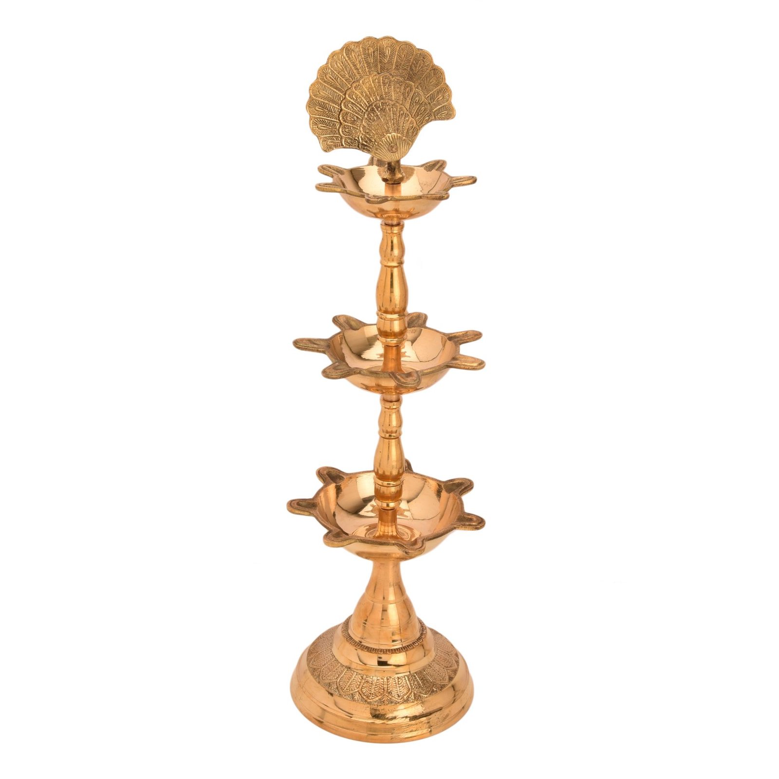 Classic & Decorative Three Step Oil Lamp Brass For Handicraft Art By BHARATHAAT