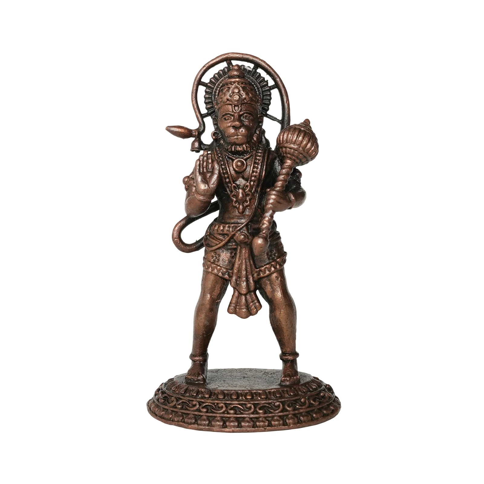 Crafted from high-quality copper, this Hanuman Idol showcases durability and sophistication, ensuring its longevity and timeless beauty. Whether used for personal devotion, enhancing your spiritual practices, or as a decorative accent, it serves as a powerful symbol of faith and protection.