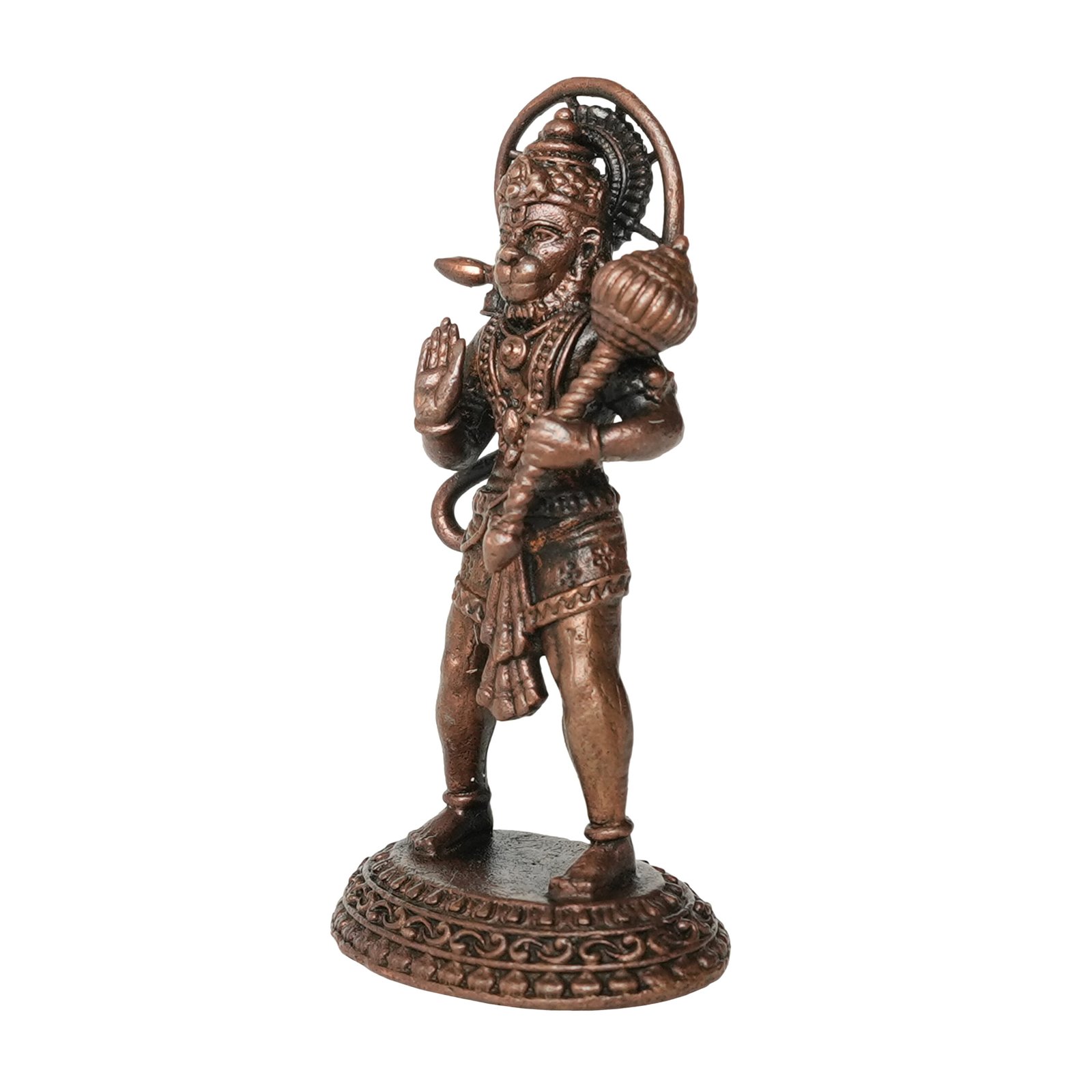 Ideal for devotees of Lord Hanuman, collectors of sacred artifacts, or anyone seeking divine inspiration, this Copper Hanuman Statue is sure to evoke reverence and devotion. Bring home this sacred sculpture and experience the divine presence and protection of Lord Hanuman in your life!