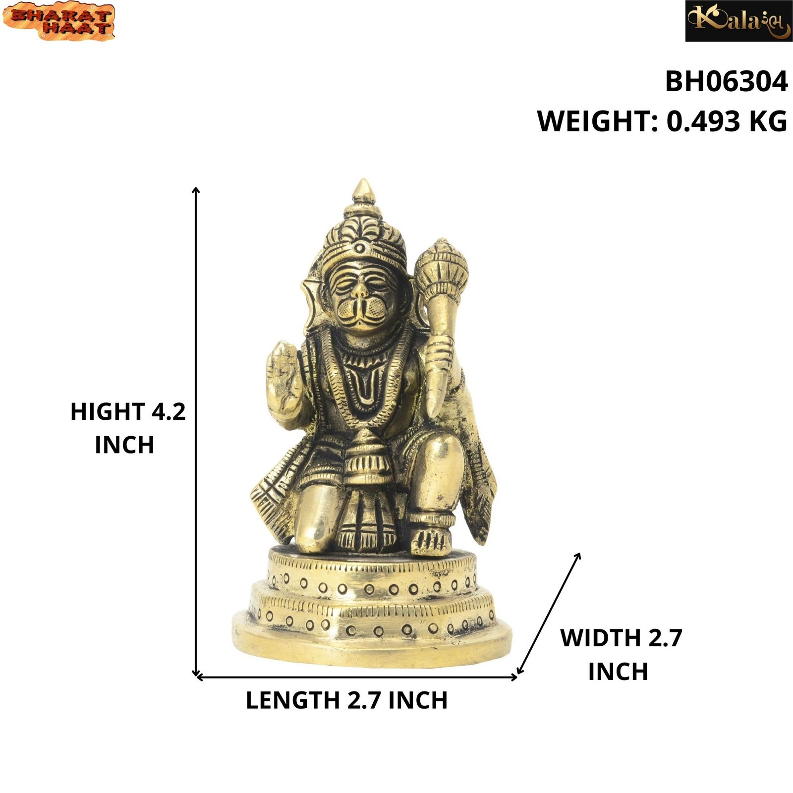 - Brass Lord Hanuman Idol Statue Carving Work Hanuman Bhagwan Idol Hanuman Murti Home Office Entrance Decor Pooja Best for Gift Showpiece HANDICRAFT ART BY BHARAT HAAT