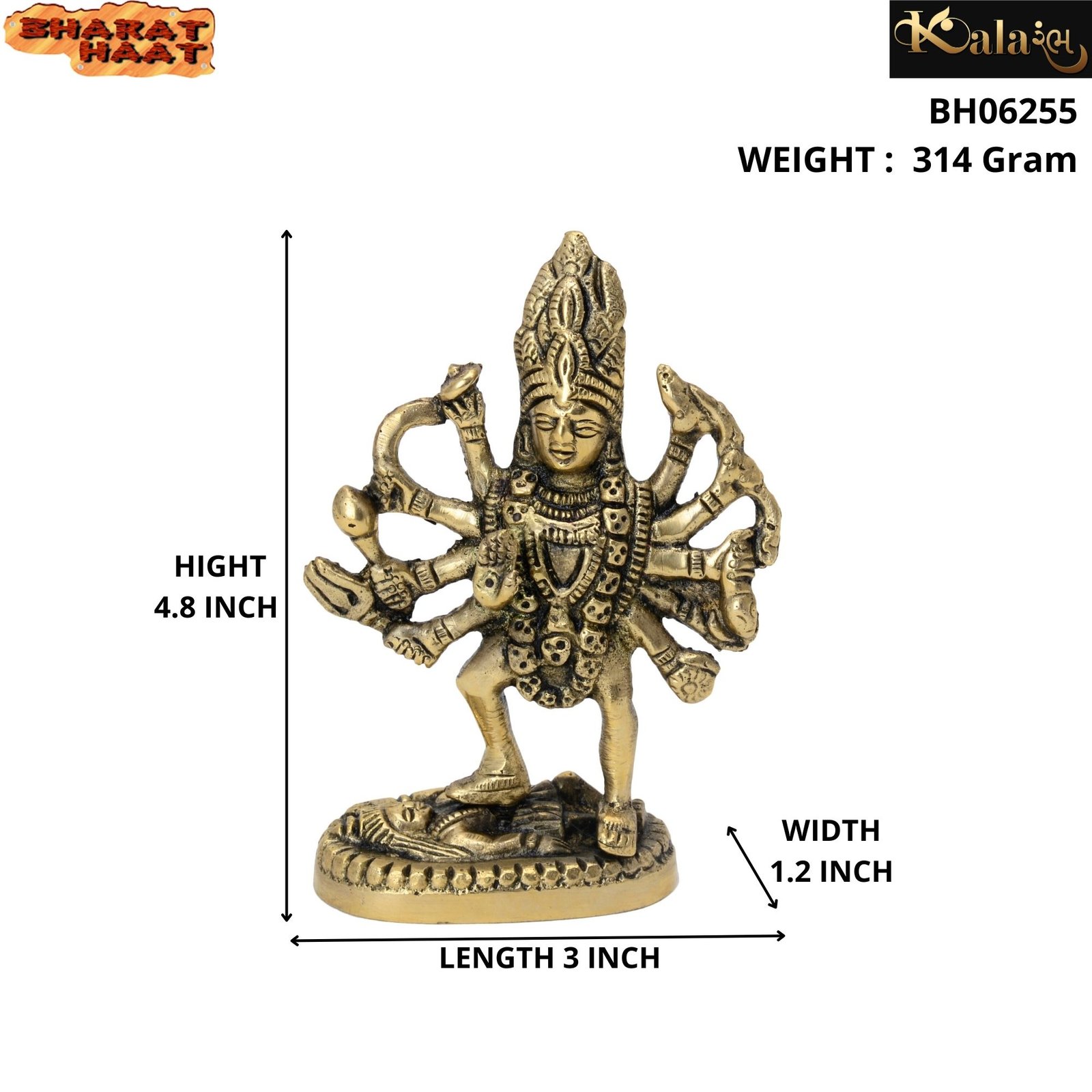 - Brass Kalika Maa Murti Shree Kali Mata Idol Kuldevi for Pooja Decoration Carving Work HANDICRAFT ART BY BHARAT HAAT.