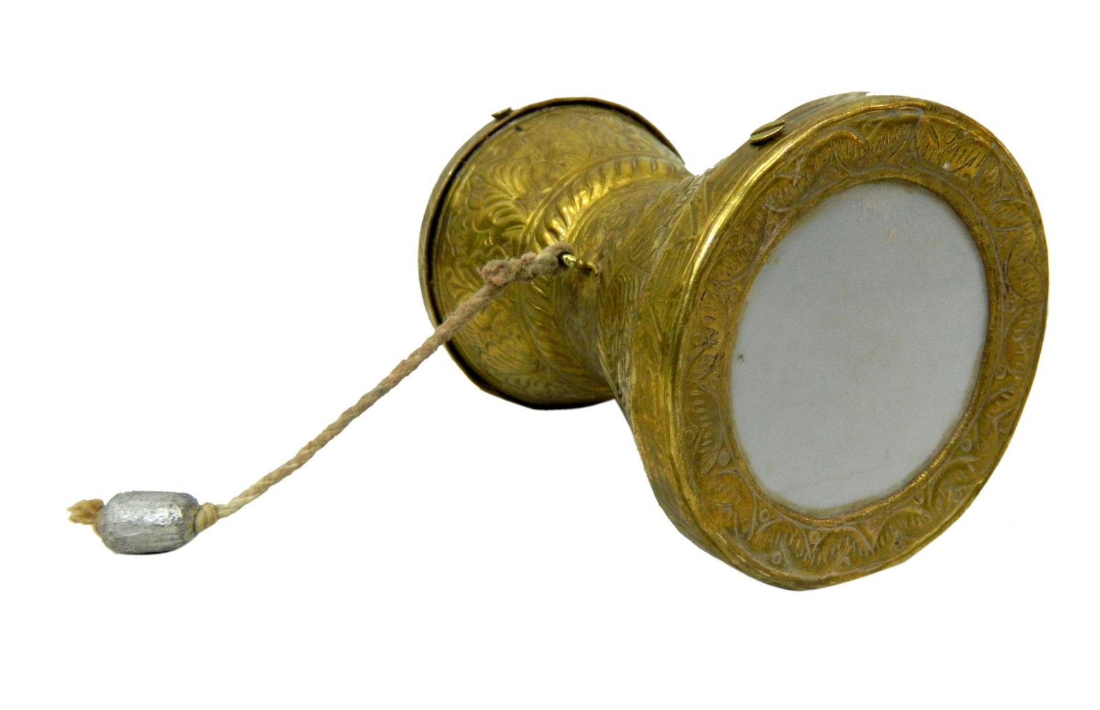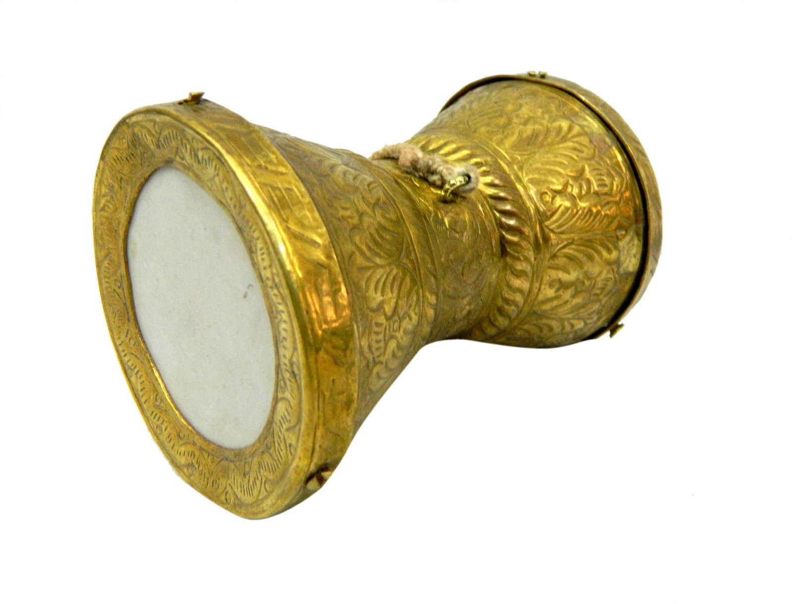 This Brass Damru is a beautifully crafted instrument that holds great cultural and spiritual significance. Traditionally associated with Lord Shiva, the damru is known for its unique shape and rhythmic sounds, symbolizing cosmic energy and creation. This brass damru is ideal for spiritual practices, decor, or as a collector’s piece, adding a touch of traditional charm to any setting.