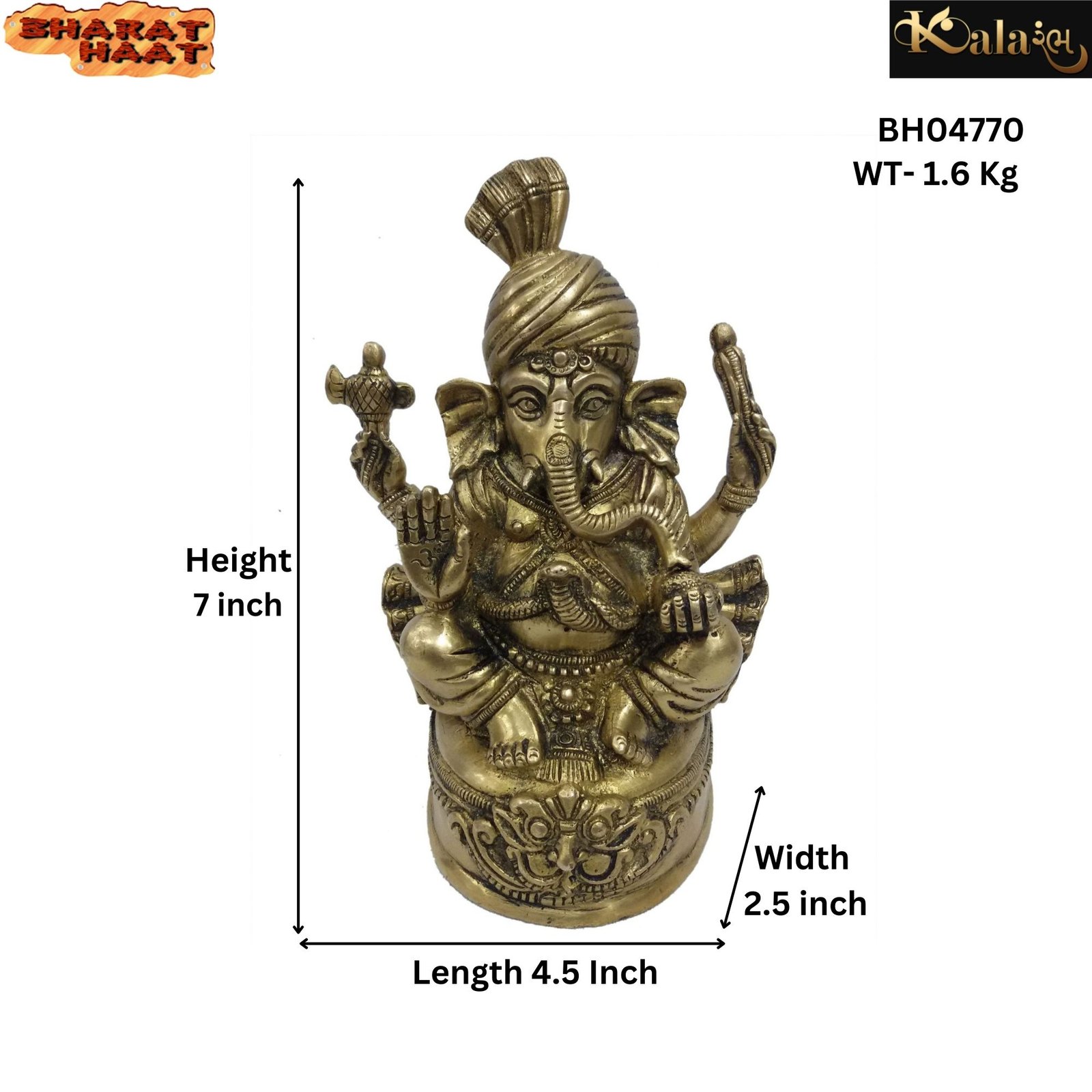 Decorative Statue Of Turban Ganesh Brass For Handicraft Art By BHARATHAAT