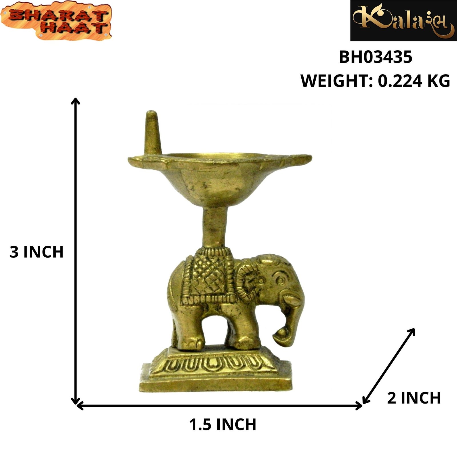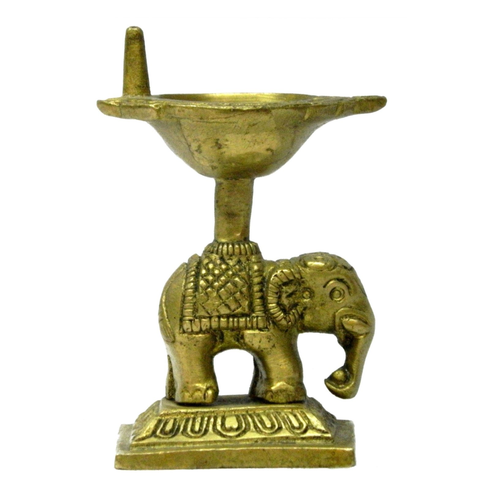 Divi/Diya with Elephant Brass For Collectible Handicraft Art By BHARATHAAT