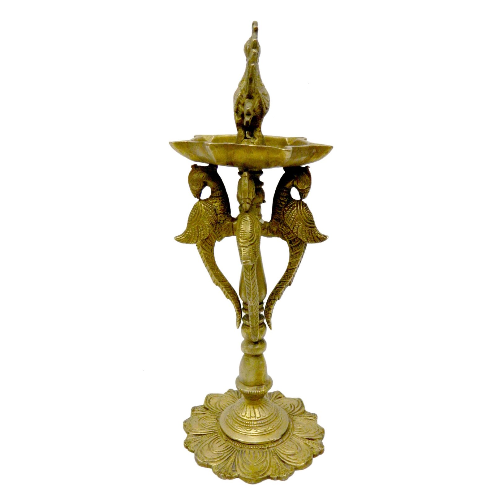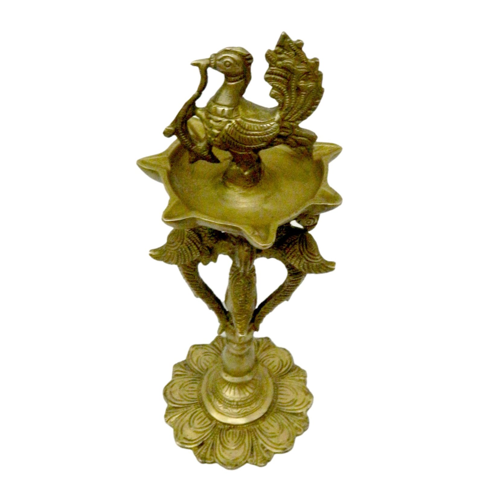 Divi/Diya with Peacock and Parrot Design Brass Collectible Handicraft Art by BHARATHAAT