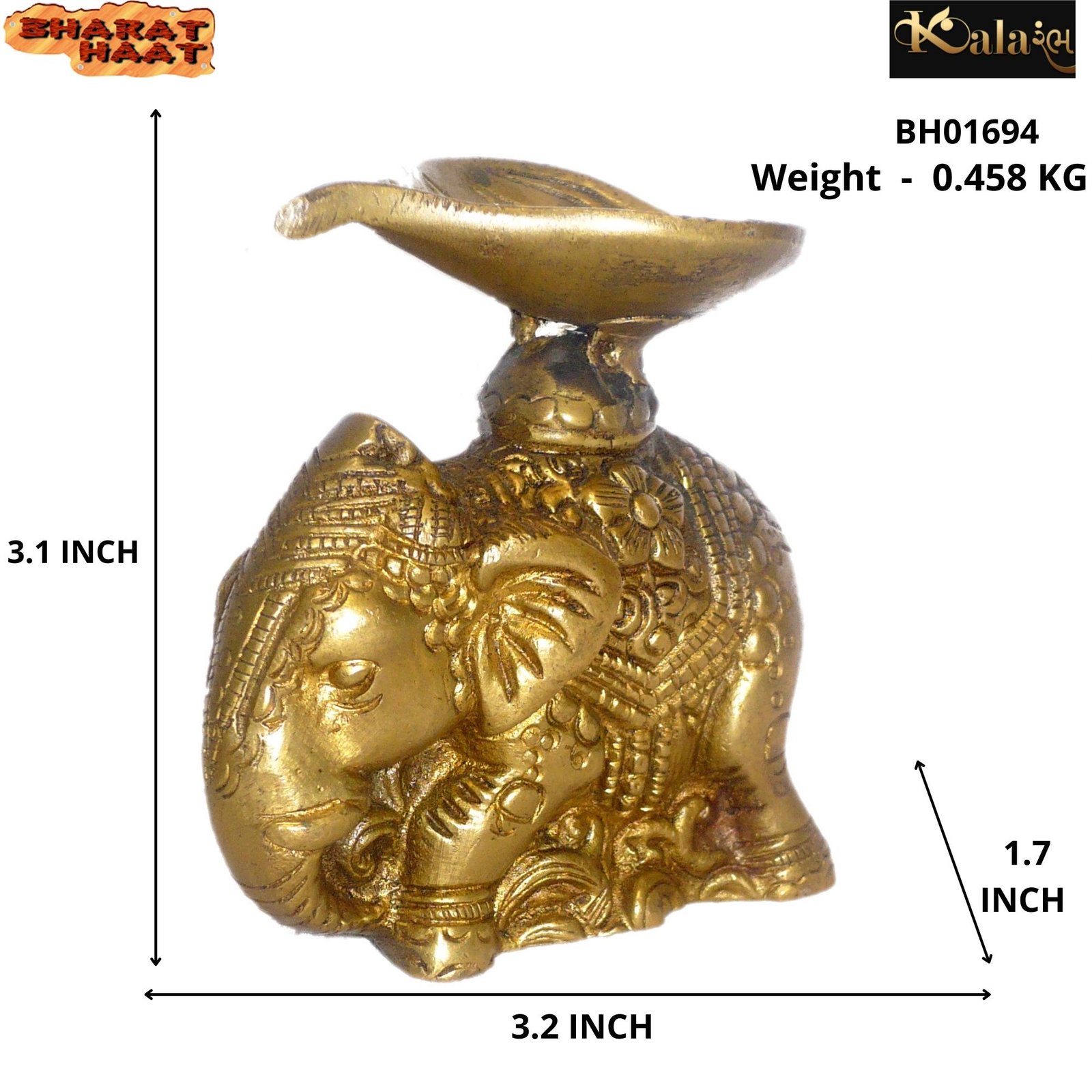 Elephant Stand Diya Brass Metal Medium in Size Statue by BHARAT HAAT