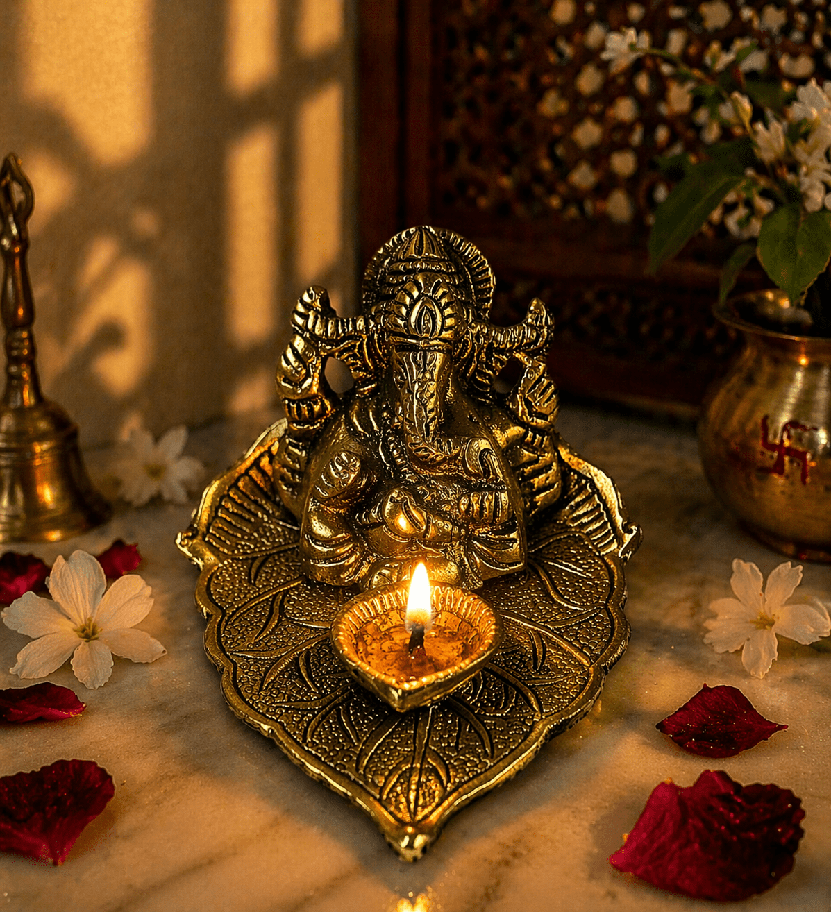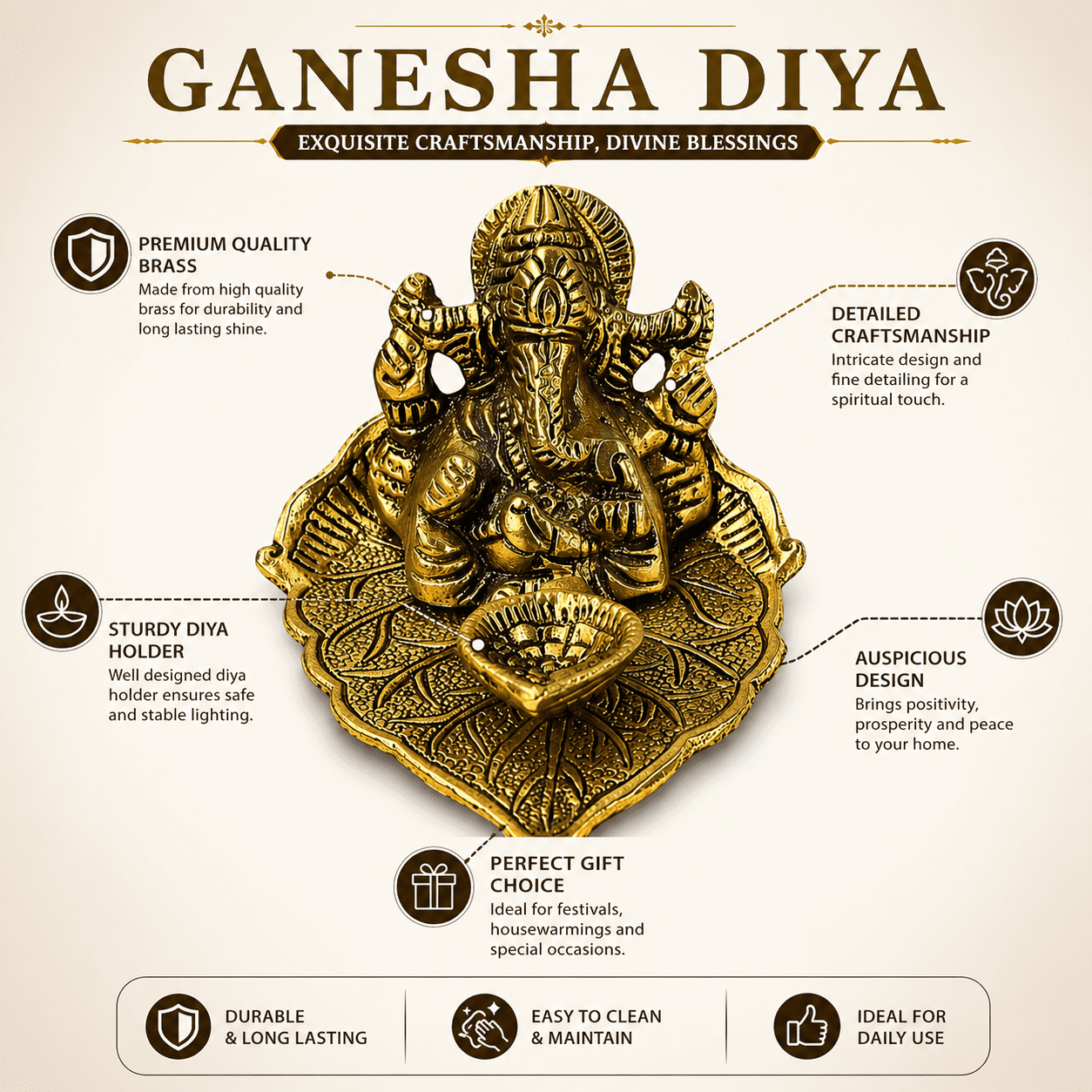 Ganesha Diya 2.75 Inch Bring peace, positivity, and divine energy into your home with this beautifully crafted Ganesha Diya. Designed with care, this diya features Lord Ganesha, known as the remover of obstacles and the symbol of prosperity and wisdom. Its elegant design makes it perfect for both daily use and special occasions.