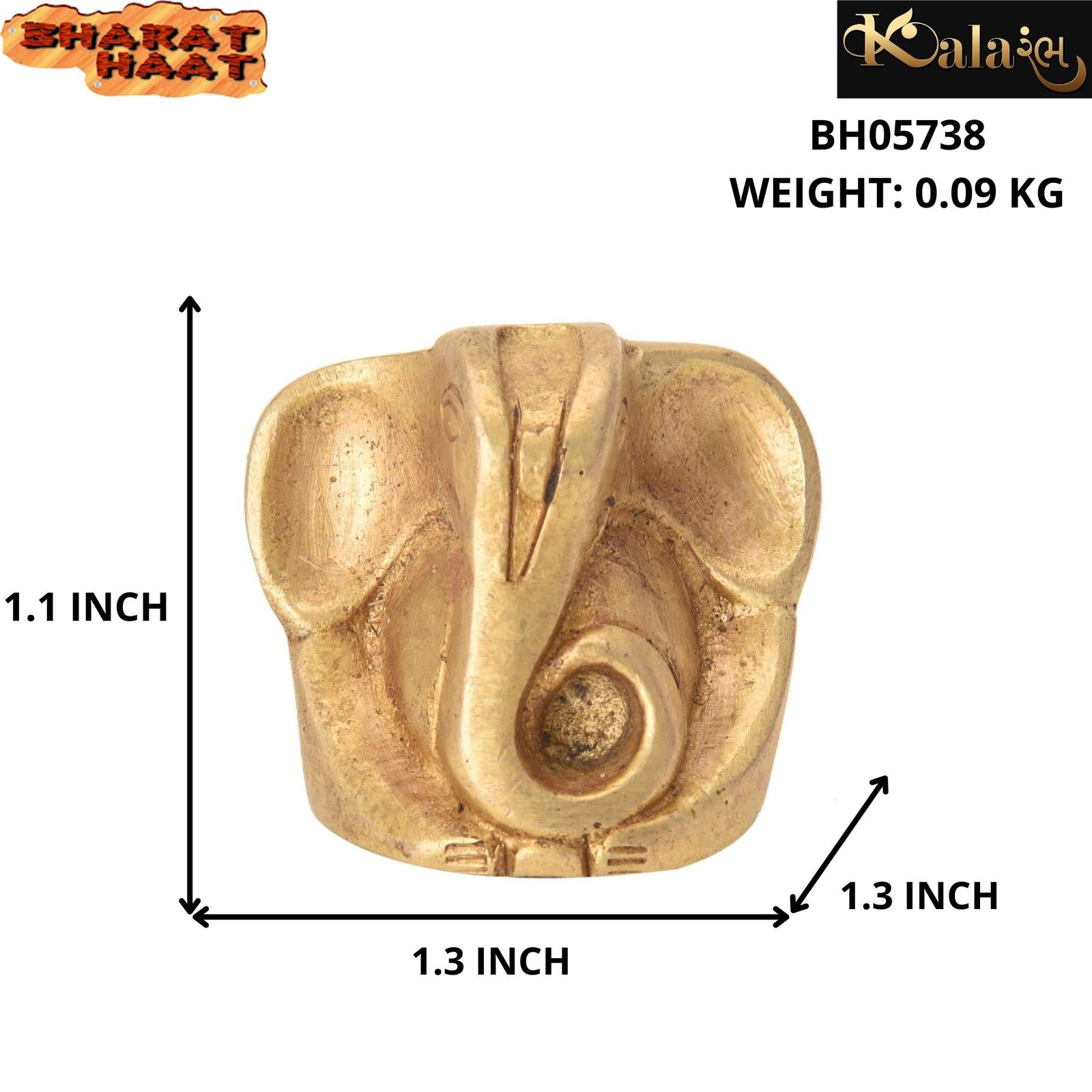 Ganesha Face & Tusk Small Brass For Collectible Handicraft Art By BHARATHAAT