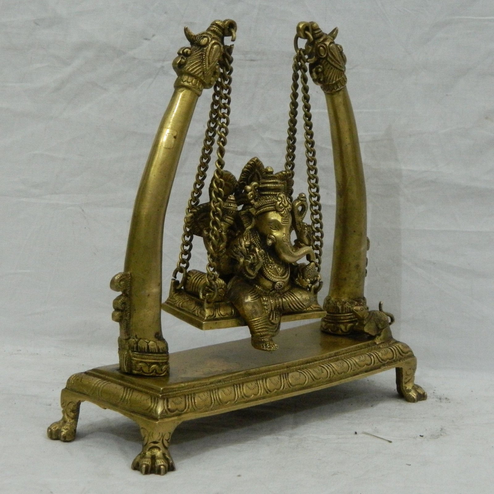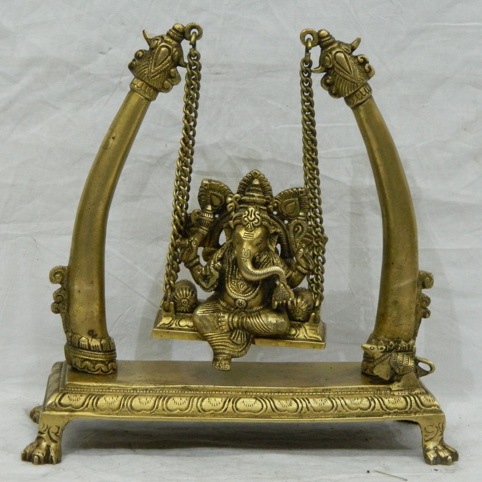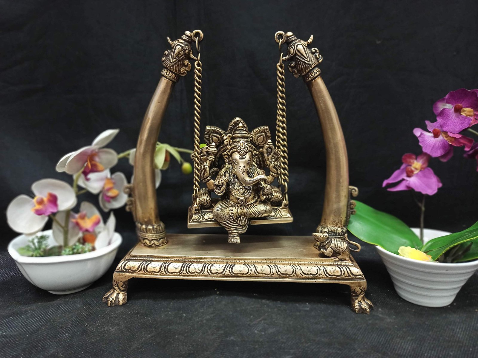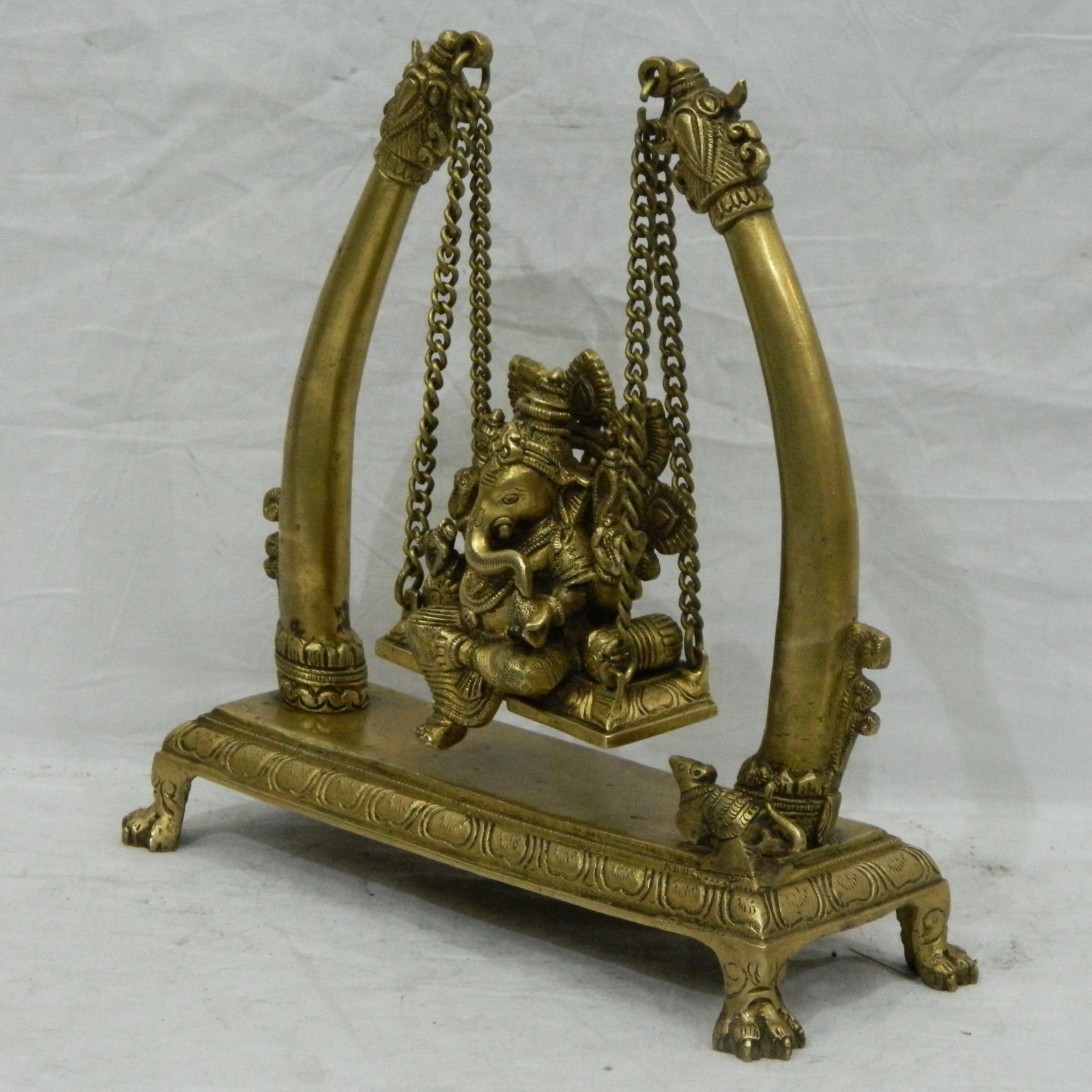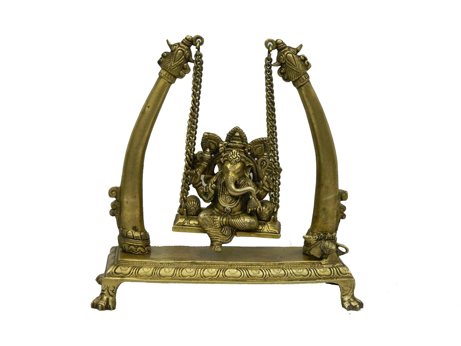 Ganesha God On Swing (Jhoola Ganesh) Brass For Collectible Handicraft Art By BHARATHAAT