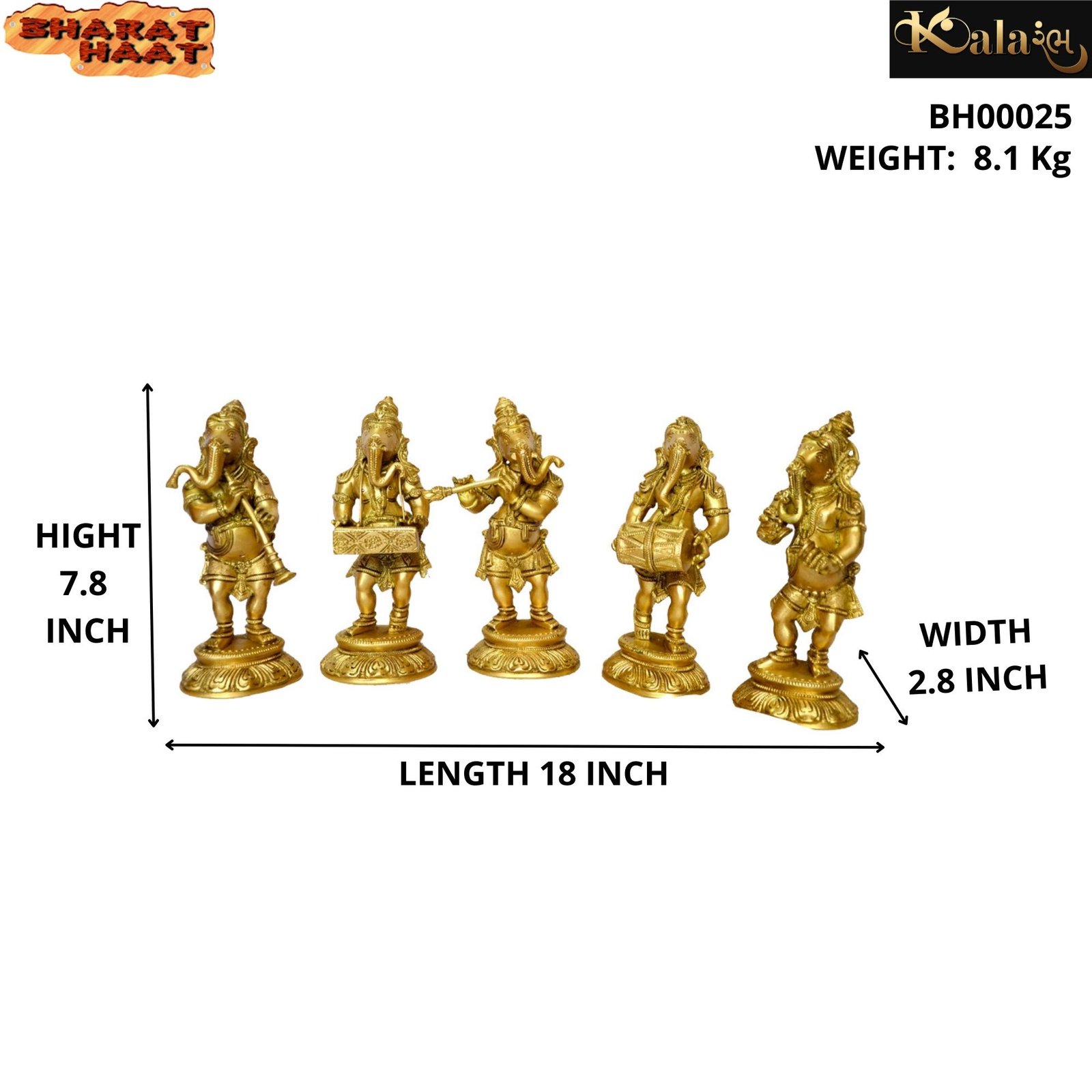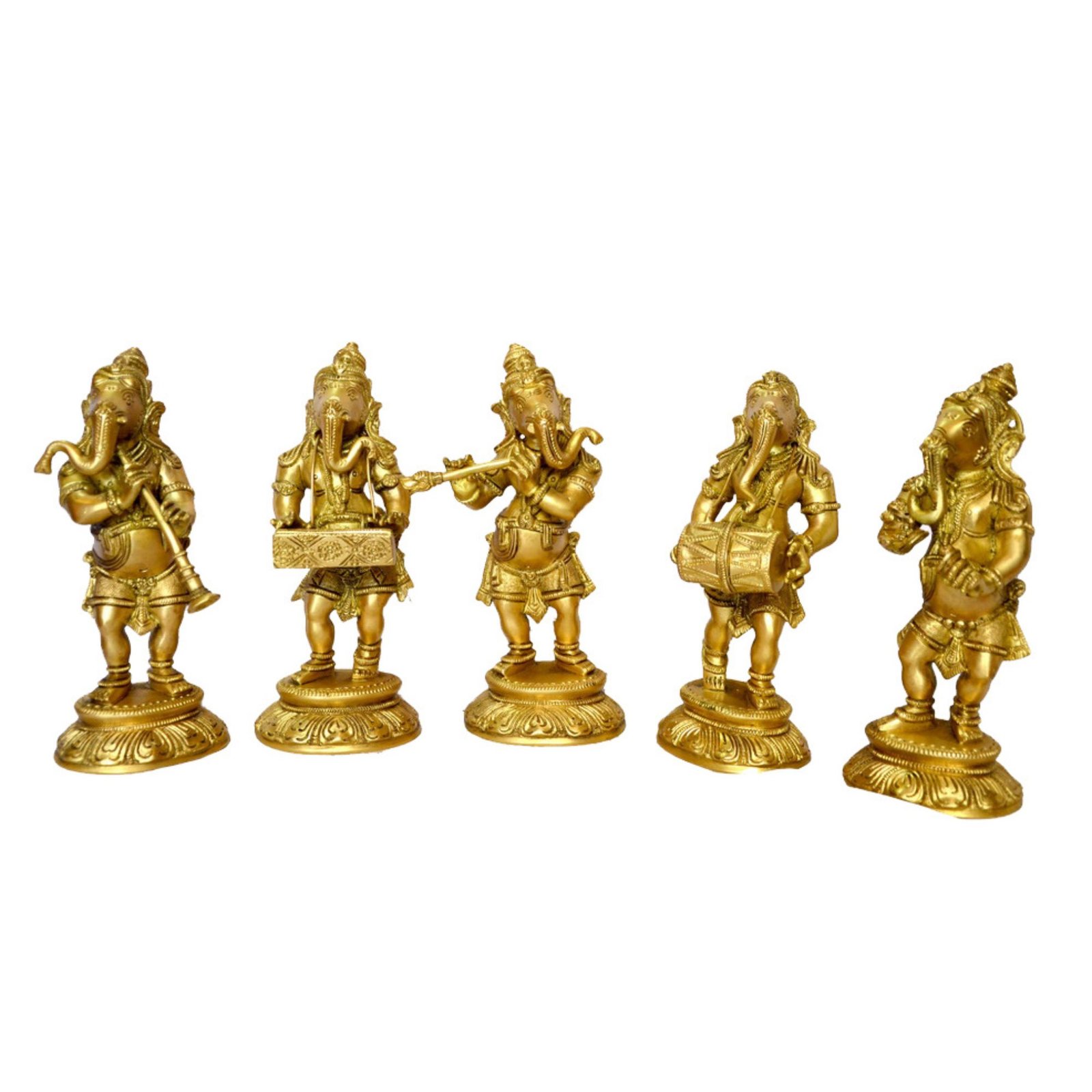 Ganesha Standing Musical Set Of Brass For Handicraft Art By BHARATHAAT