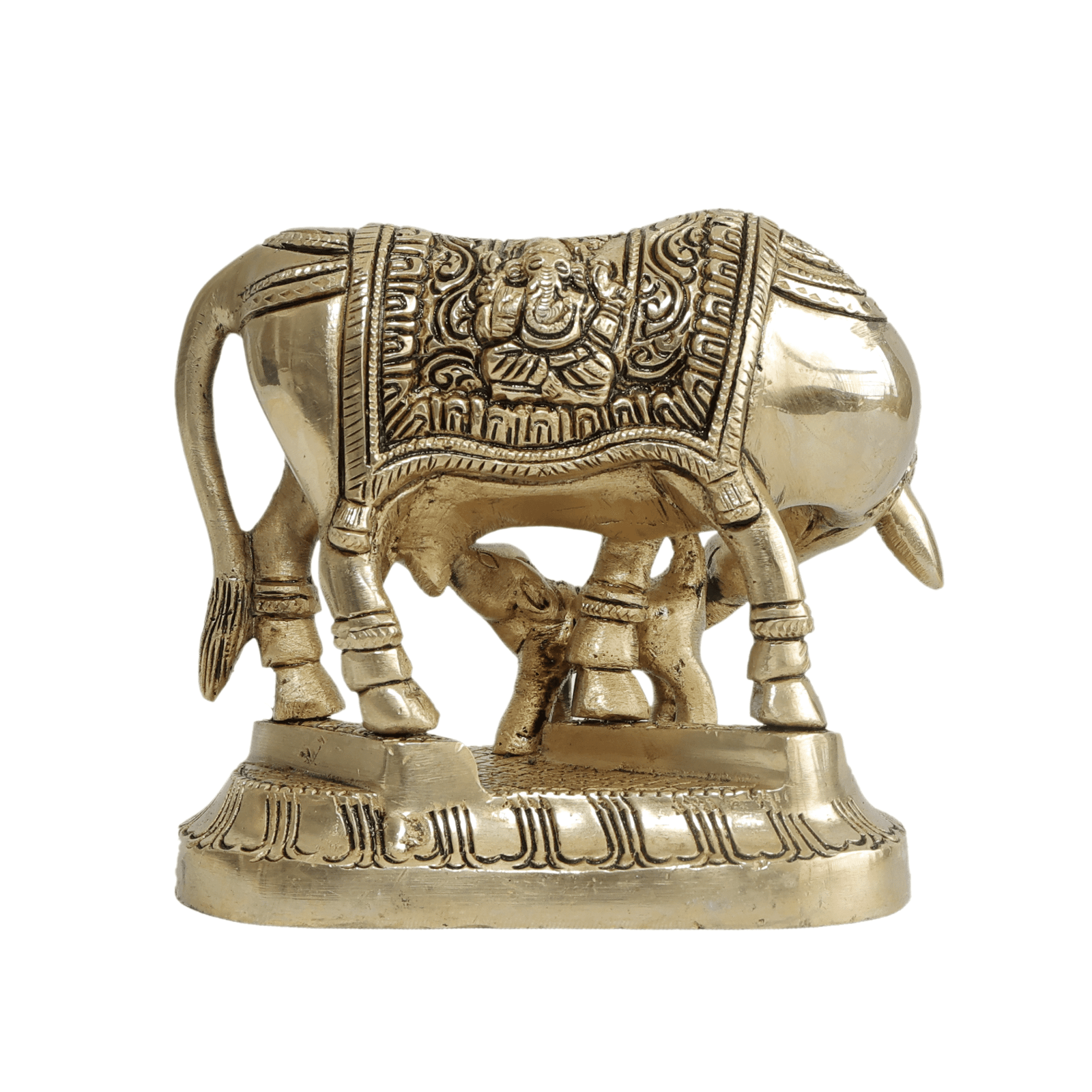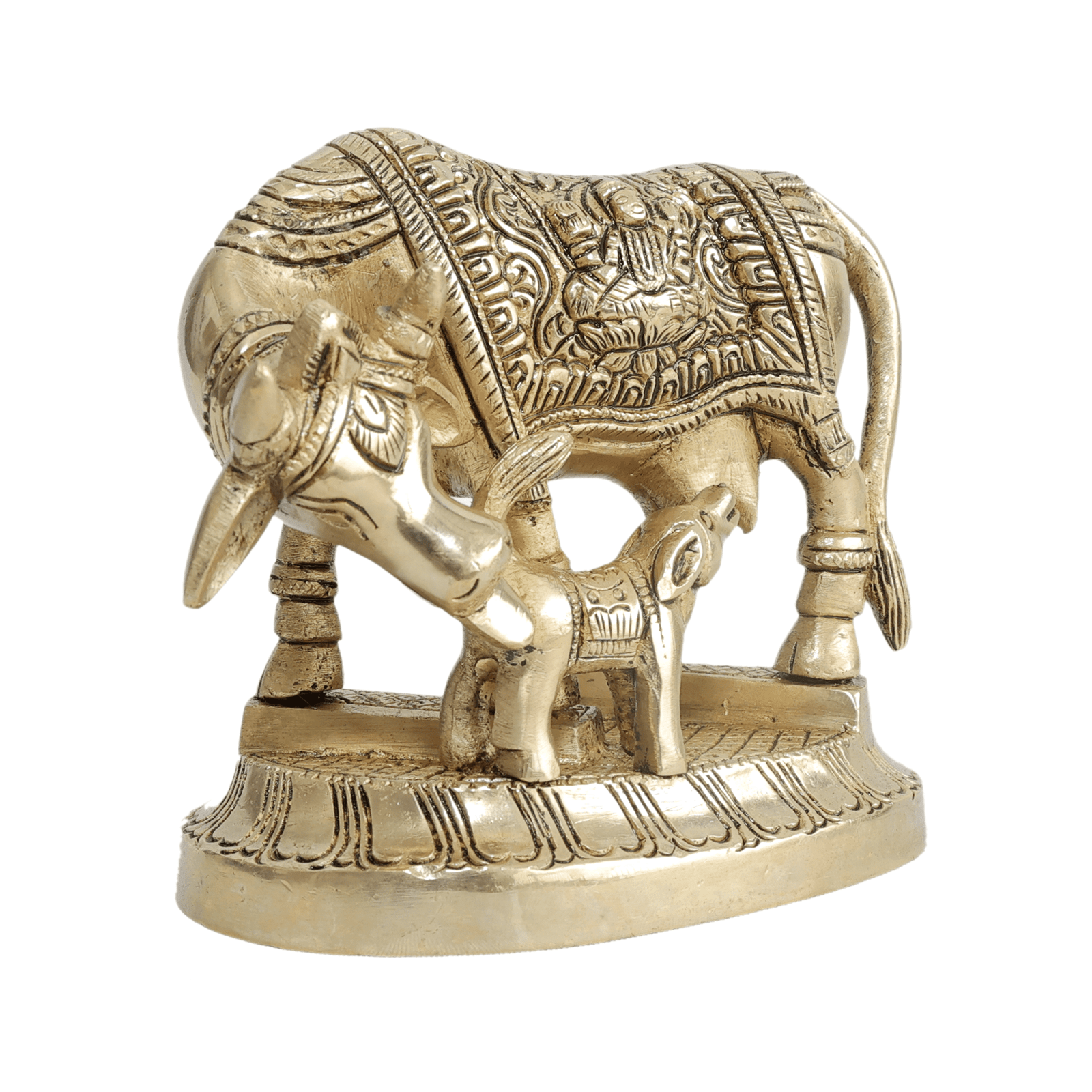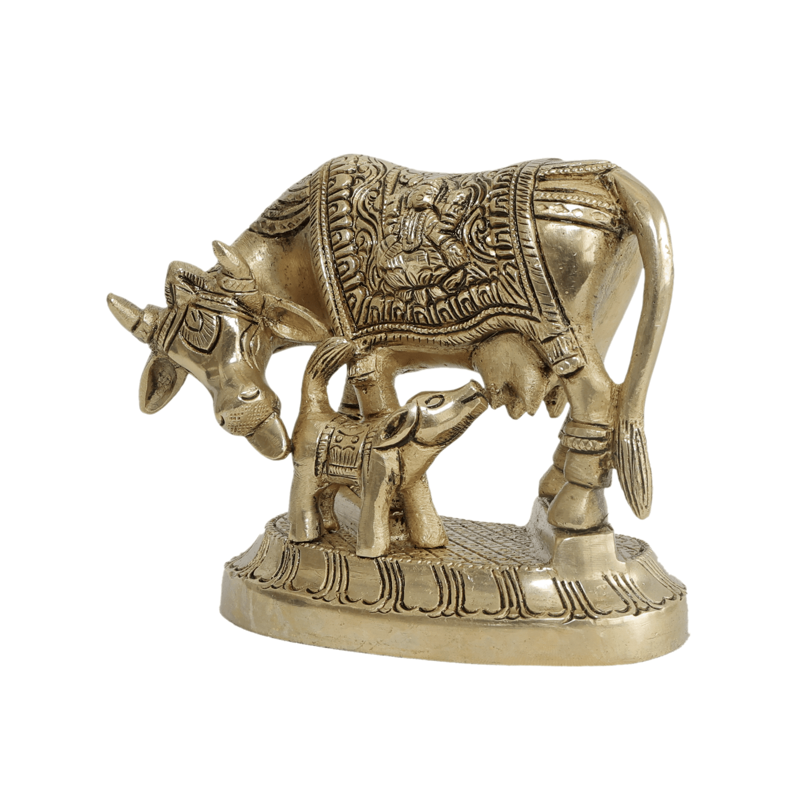 Handcrafted Brass Cow & Calf Idol – Kamadhenu Statue for Pooja Room & Home Décor