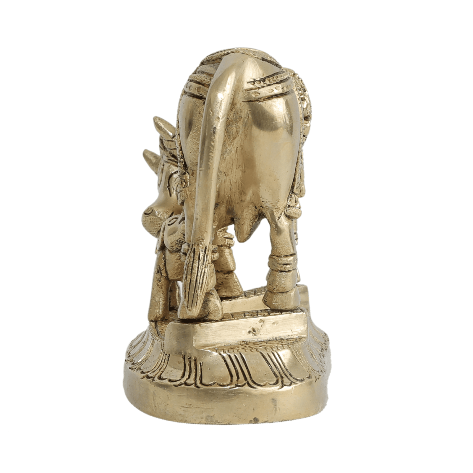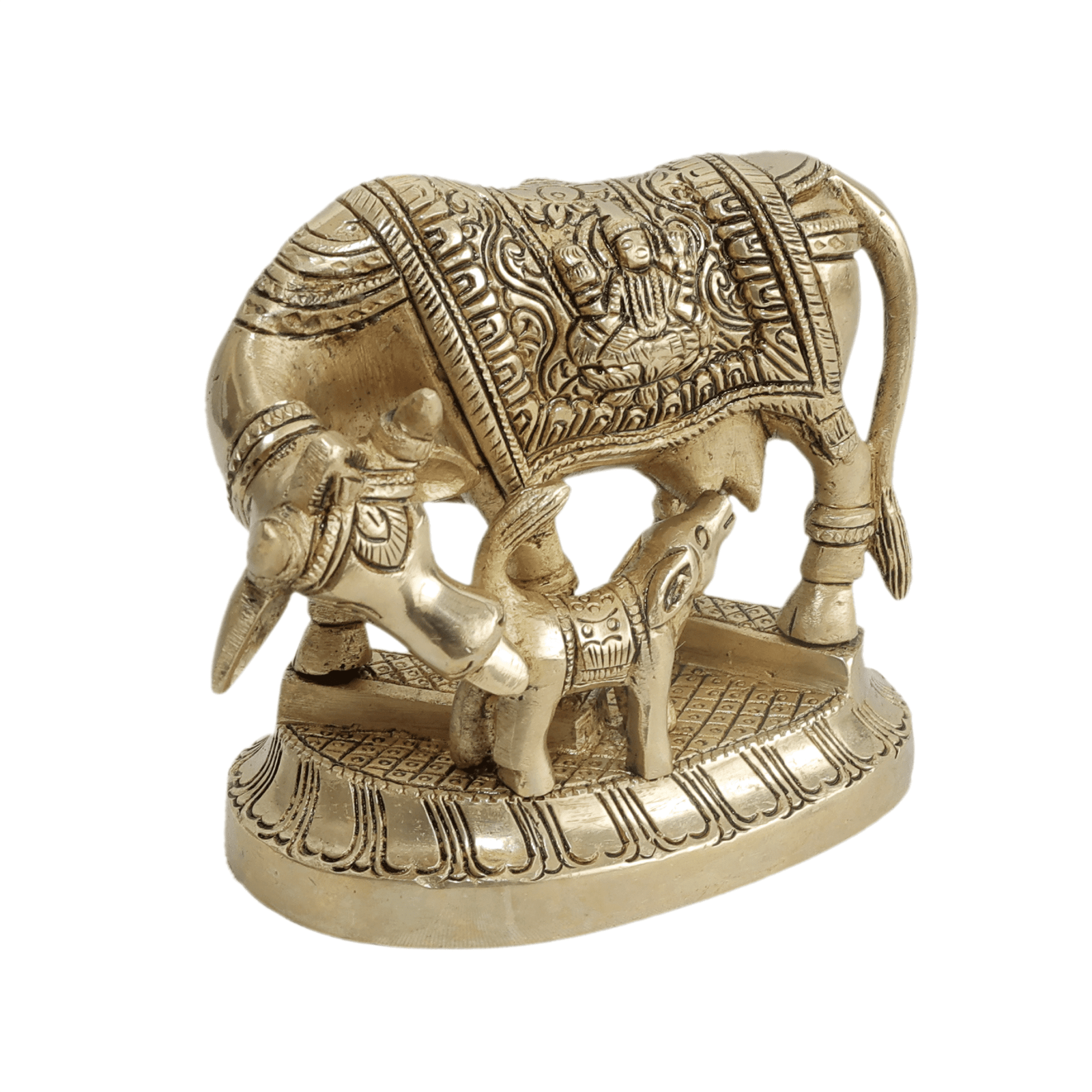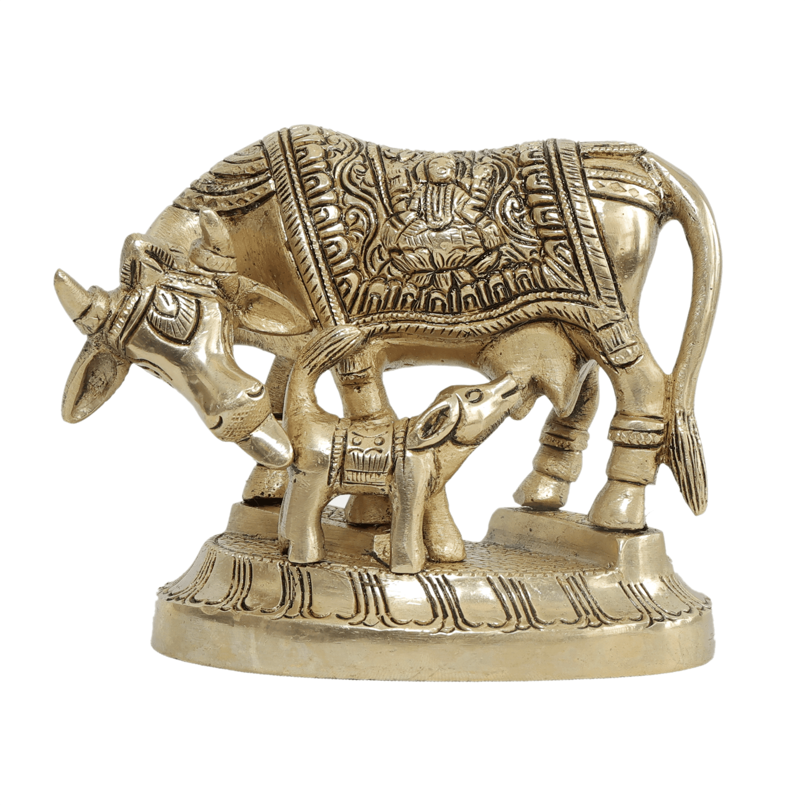 Handcrafted Brass Cow & Calf Idol – Kamadhenu Statue for Pooja Room & Home Décor