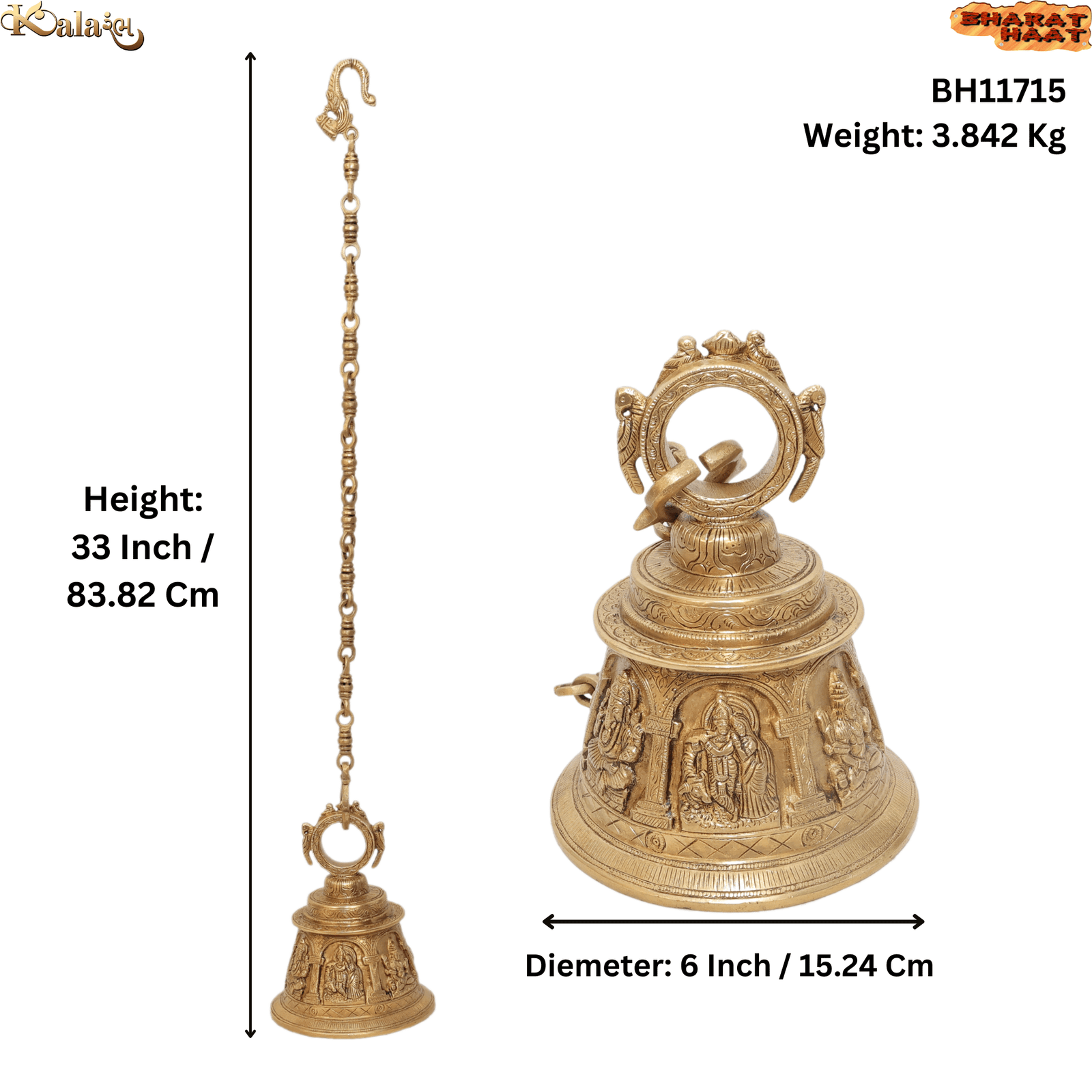 Handcrafted Brass Hanging Bell – Large Traditional Temple Bell for Home, Mandir & Decor