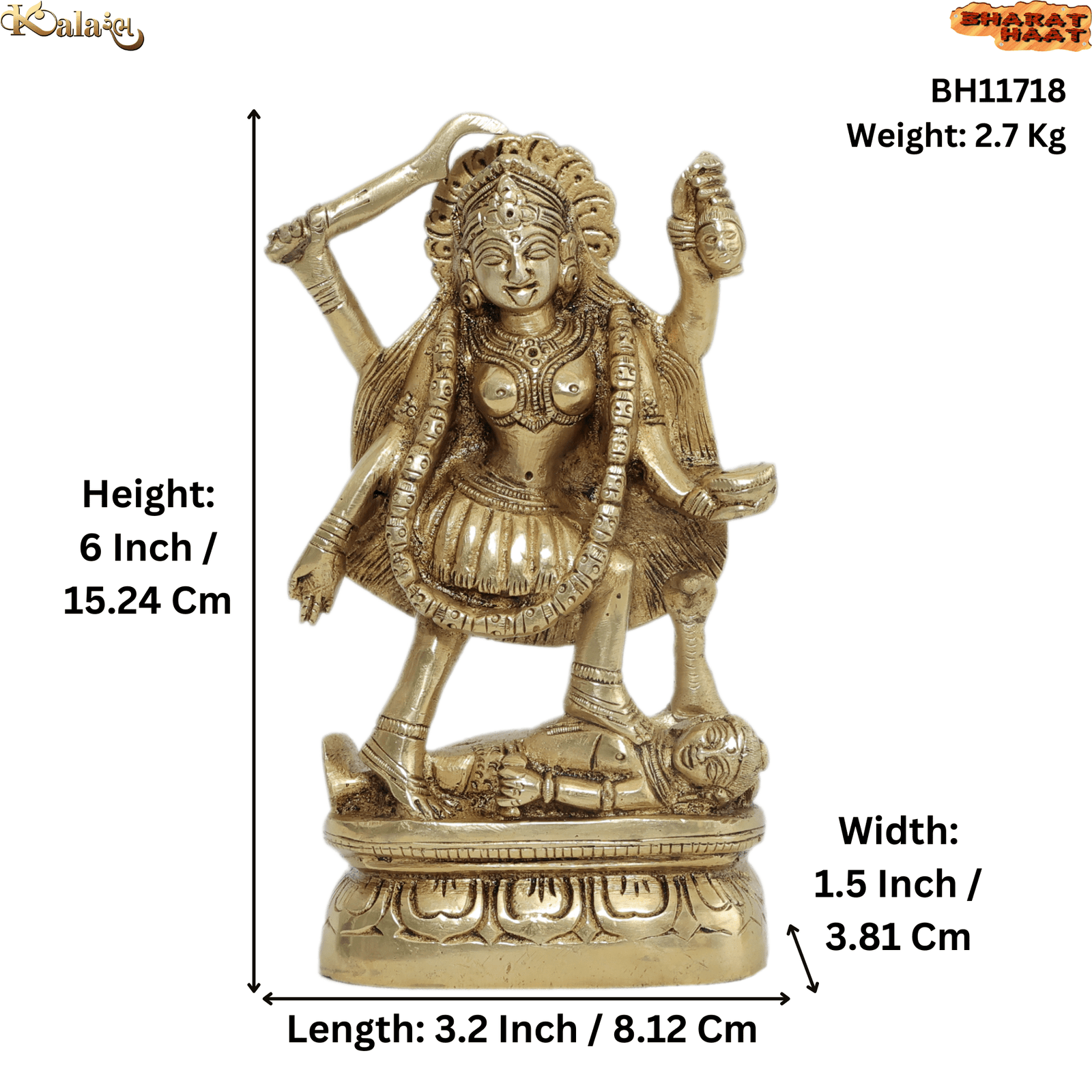 Handcrafted Brass Mahakali Maa Idol – Divine Goddess Kali Statue for Home & Pooja Room