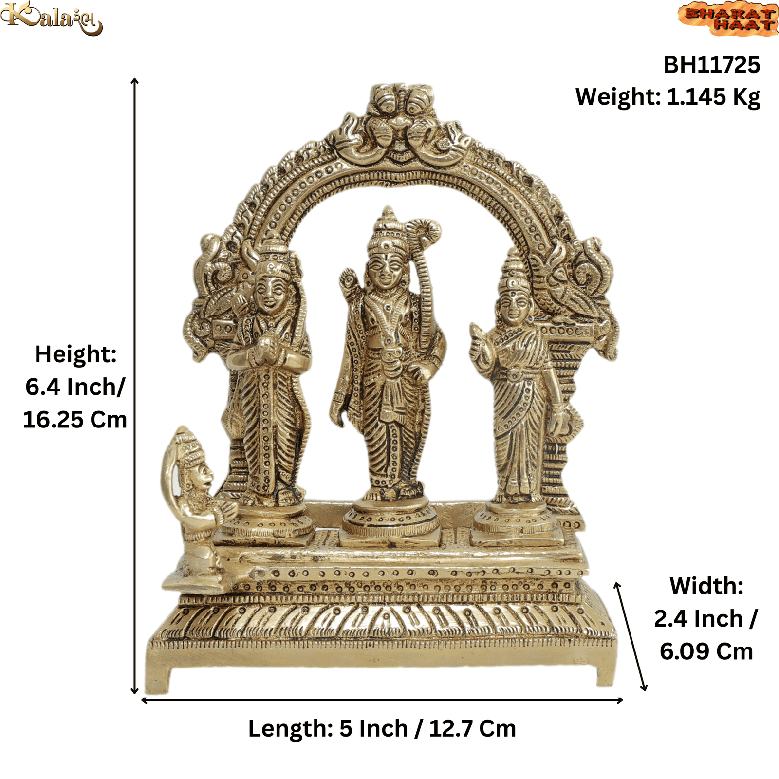 Handcrafted Brass Ram Darbar Idol – Lord Ram, Sita, Lakshman & Hanuman Statue for Pooja Room & Home Décor