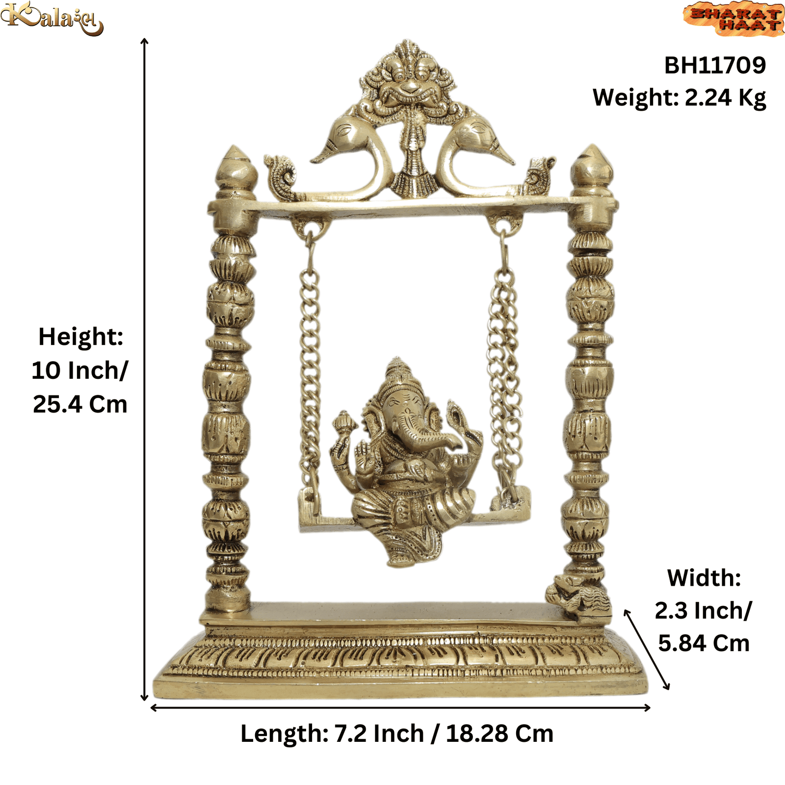 Handcrafted Brass Zula Ganesha – Lord Ganesha on Swing Decorative Idol for Home & Pooja Room
