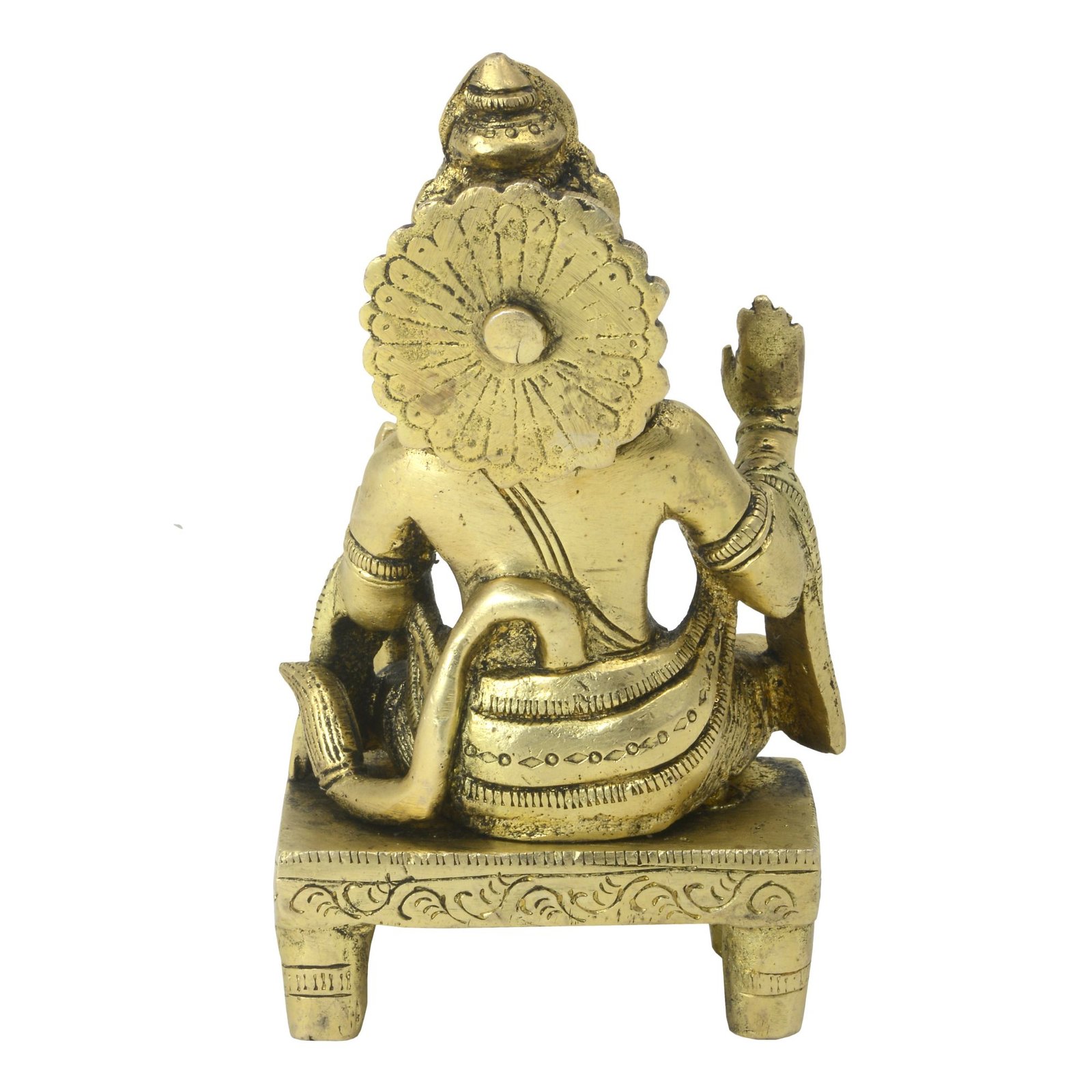 - A Beautiful Hanuman art Work Sitting on Flower Design Round Base in Brass Metal. Place it in your living room and get praised for your exclusive choice. A great gift idea for house warmings and festivals.