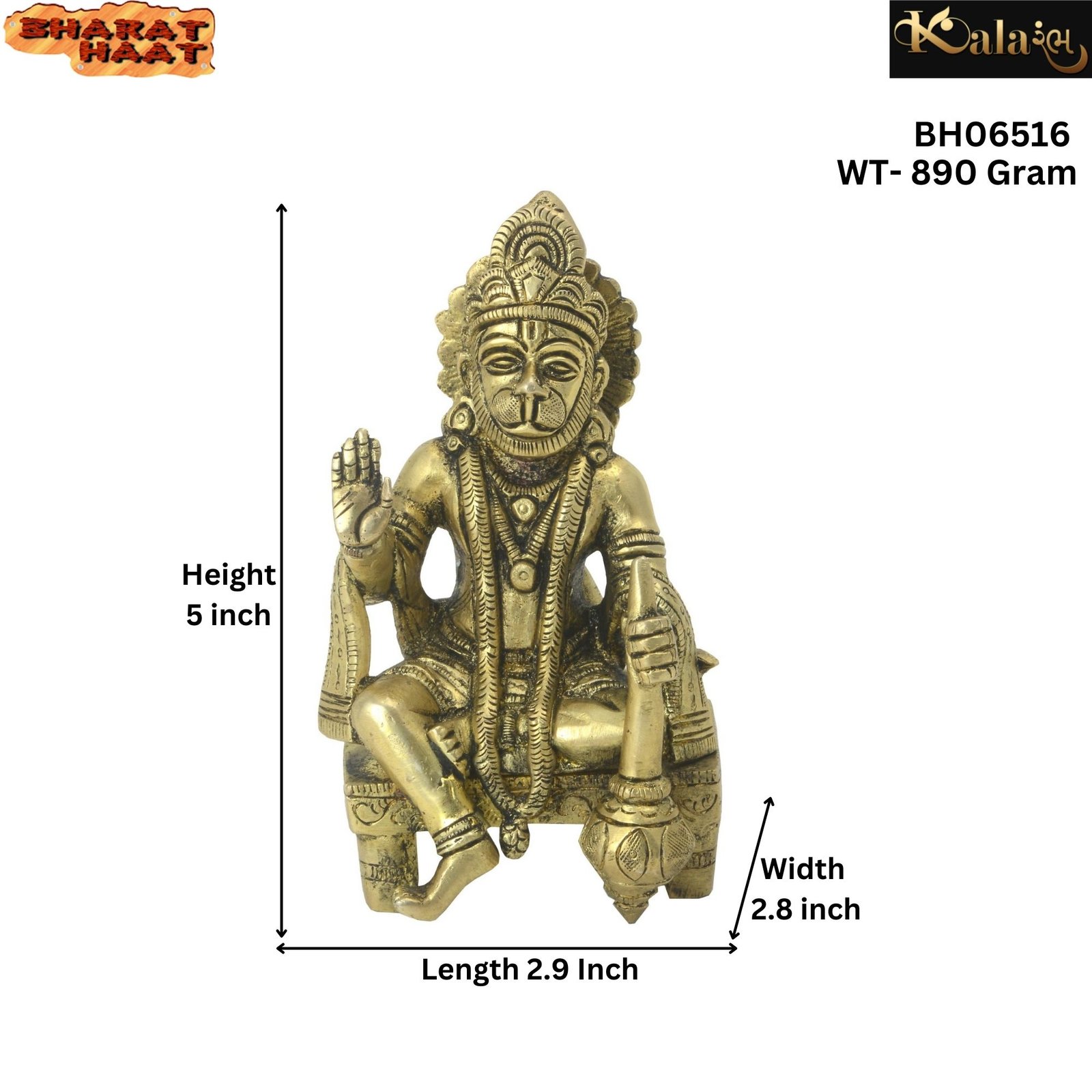 - Brass Lord Hanuman Idol Statue Carving Work Hanuman Bhagwan Idol Hanuman Murti Home Office Entrance Decor Pooja Best for Gift Showpiece HANDICRAFT ART BY BHARAT HAAT