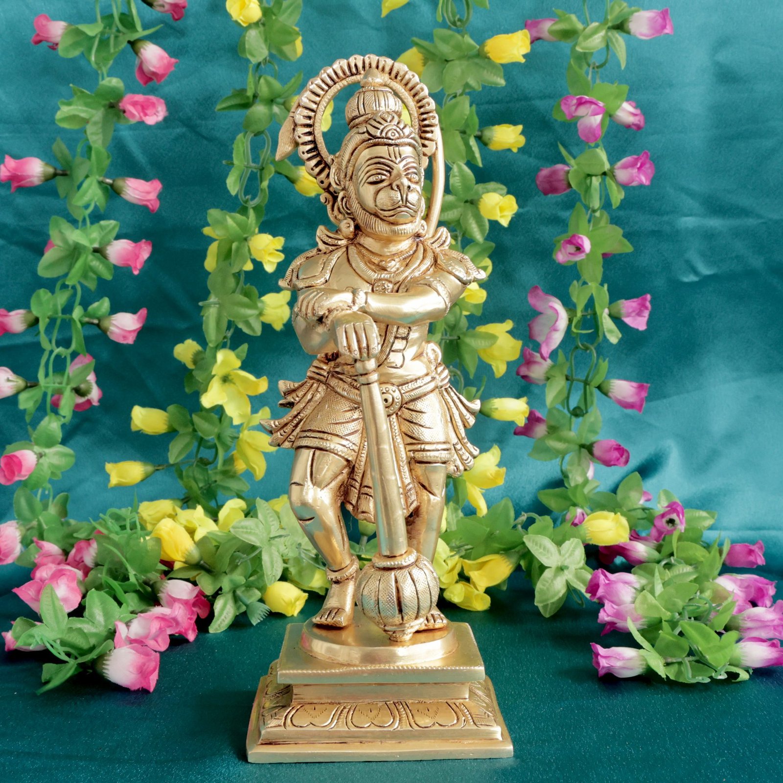 Heavy Brass Hanuman Ji Idol – Majestic Lord Hanuman Murti for Pooja, Home & Temple Décor