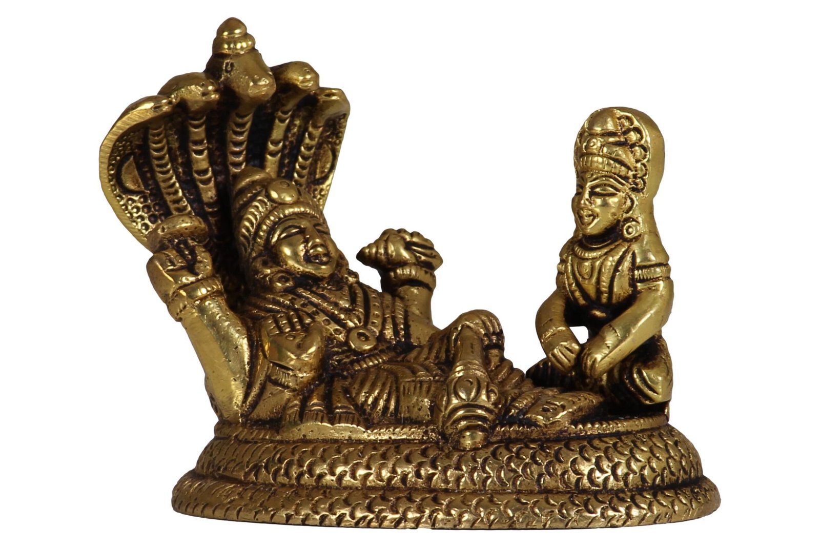 Hindu Mythology Brass Vishnu Laxmi Sitting on Shesnag Handicraft Art 2.5 Inch Height