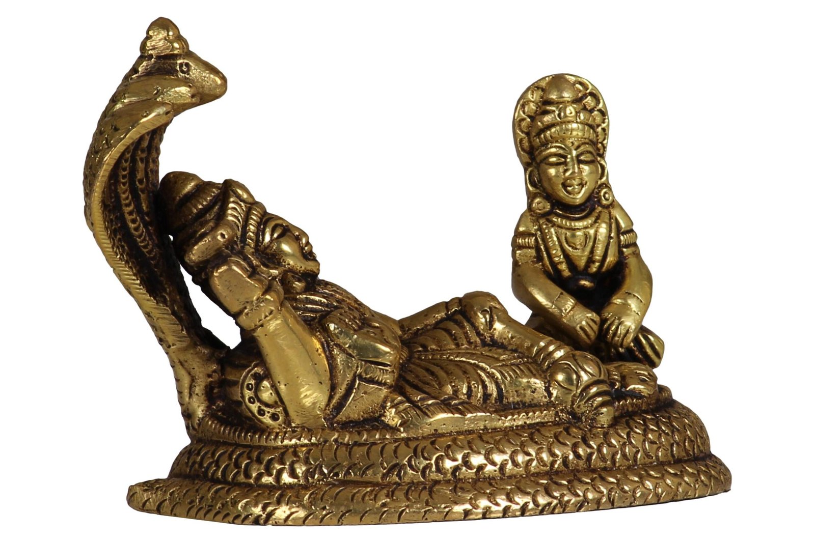 This finely crafted brass figurine depicts Lord Vishnu and Goddess Laxmi sitting on the divine serpent Shesnag, symbolizing protection, prosperity, and eternal balance. The intricately detailed sculpture is a beautiful representation of Hindu mythology, making it a powerful addition to any spiritual space. Ideal for home altars, temples, or as a devotional décor piece, this statue enhances the spiritual atmosphere while being a timeless symbol of divine blessings.