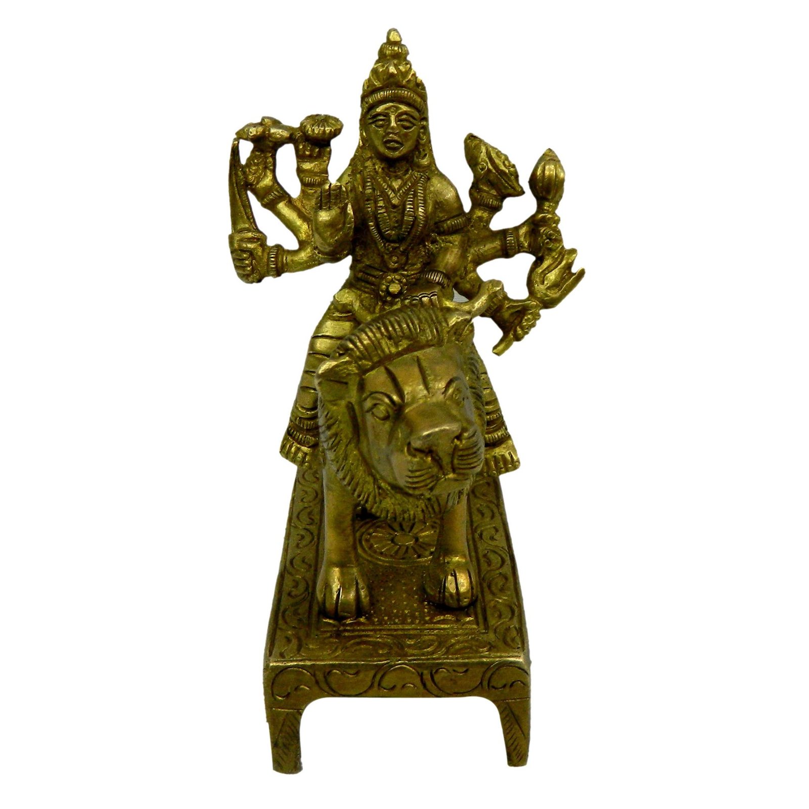 - Brass Ambe Maa Murti on Base Statue For Home Temple Navratri Diwali Special Shri Vaishno Devi Sherawali Mata Idol Durga Mata for Pooja Decoration Carving Work HANDICRAFT ART BY BHARAT HAAT.