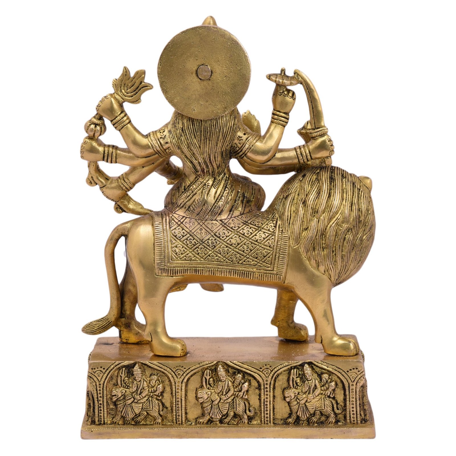 - Brass Ambe Maa Murti on Base Statue For Home Temple Navratri Diwali Special Shri Vaishno Devi Sherawali Mata Idol Durga Mata for Pooja Decoration Carving Work HANDICRAFT ART BY BHARAT HAAT.