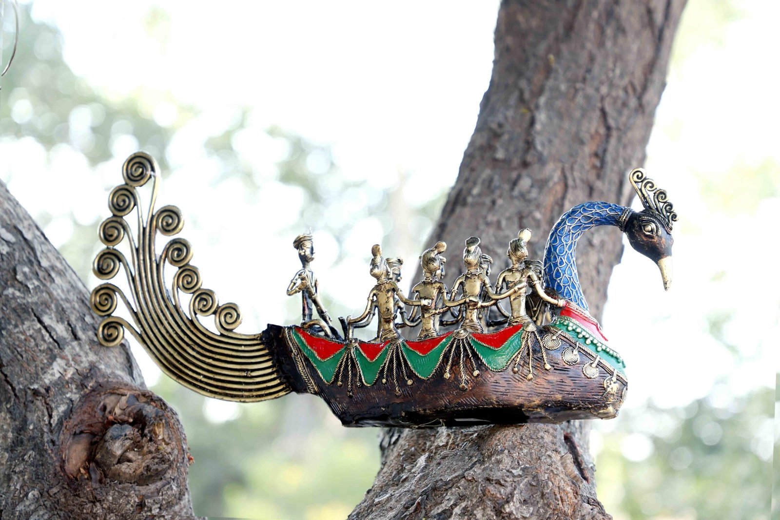 - Design: The showpiece features a beautifully detailed peacock, a symbol of grace and beauty, adorned with intricate patterns typical of Bastar tribal art. The elongated form and delicate engravings highlight the artisan’s attention to detail and respect for traditional motifs.