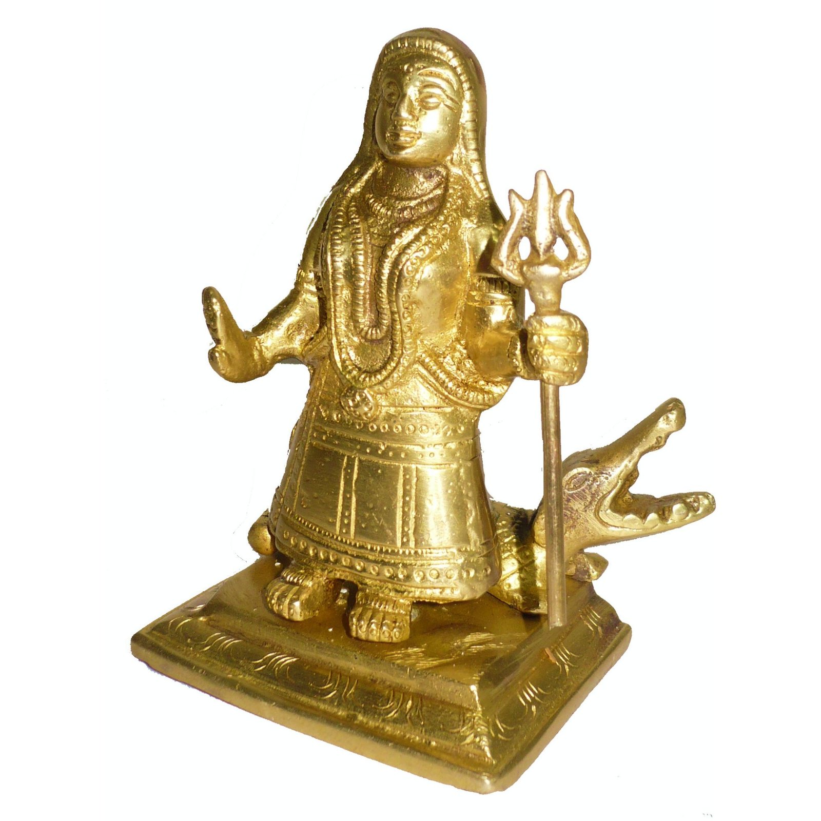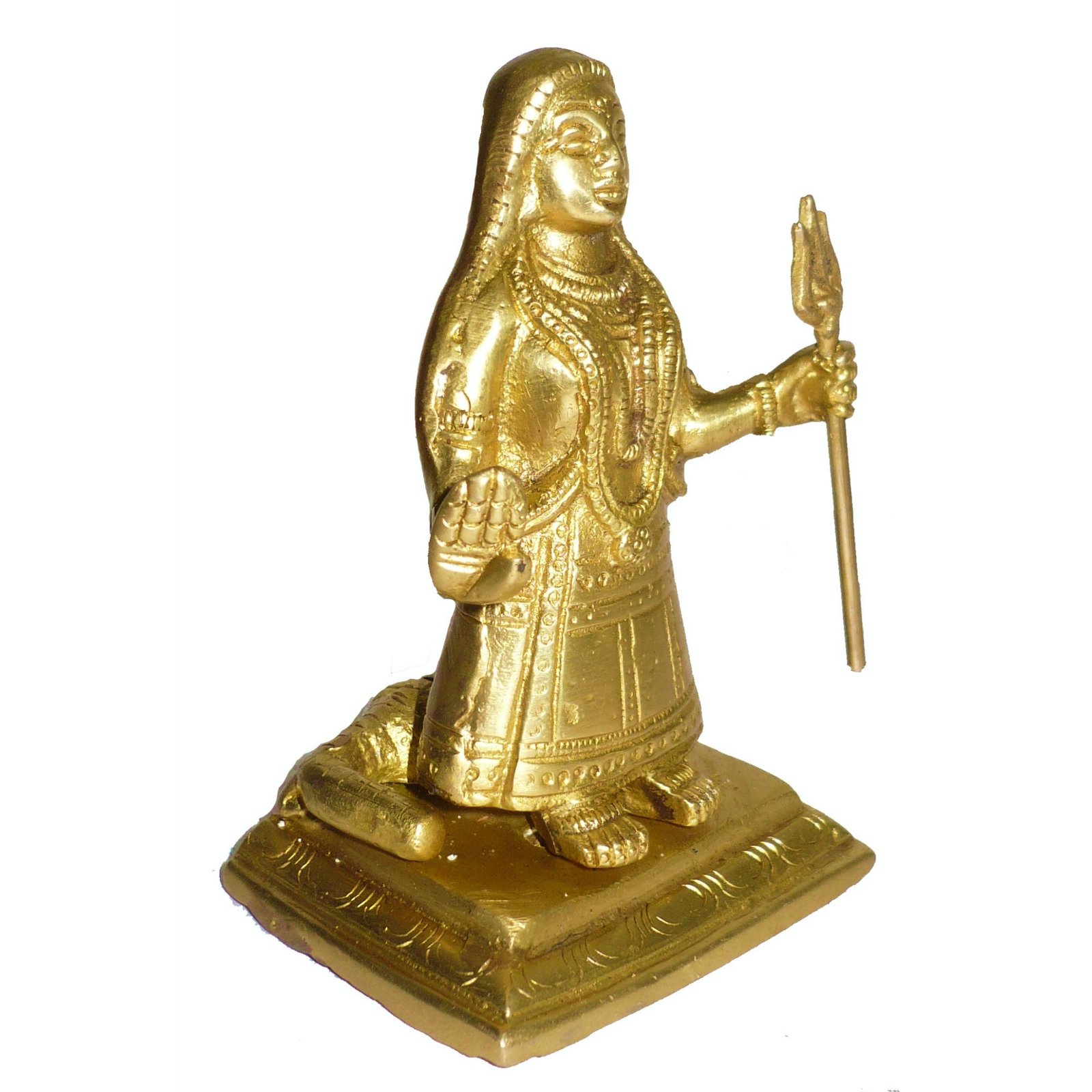 - Made of good quality brass, this Yellow-coloured Khodiyar Maa statue is Designing and beautifully shaped. Sturdy, easy to maintain, and long-lasting, this Khodiyaar Maa Idol makes a great addition to Pooja Temple.