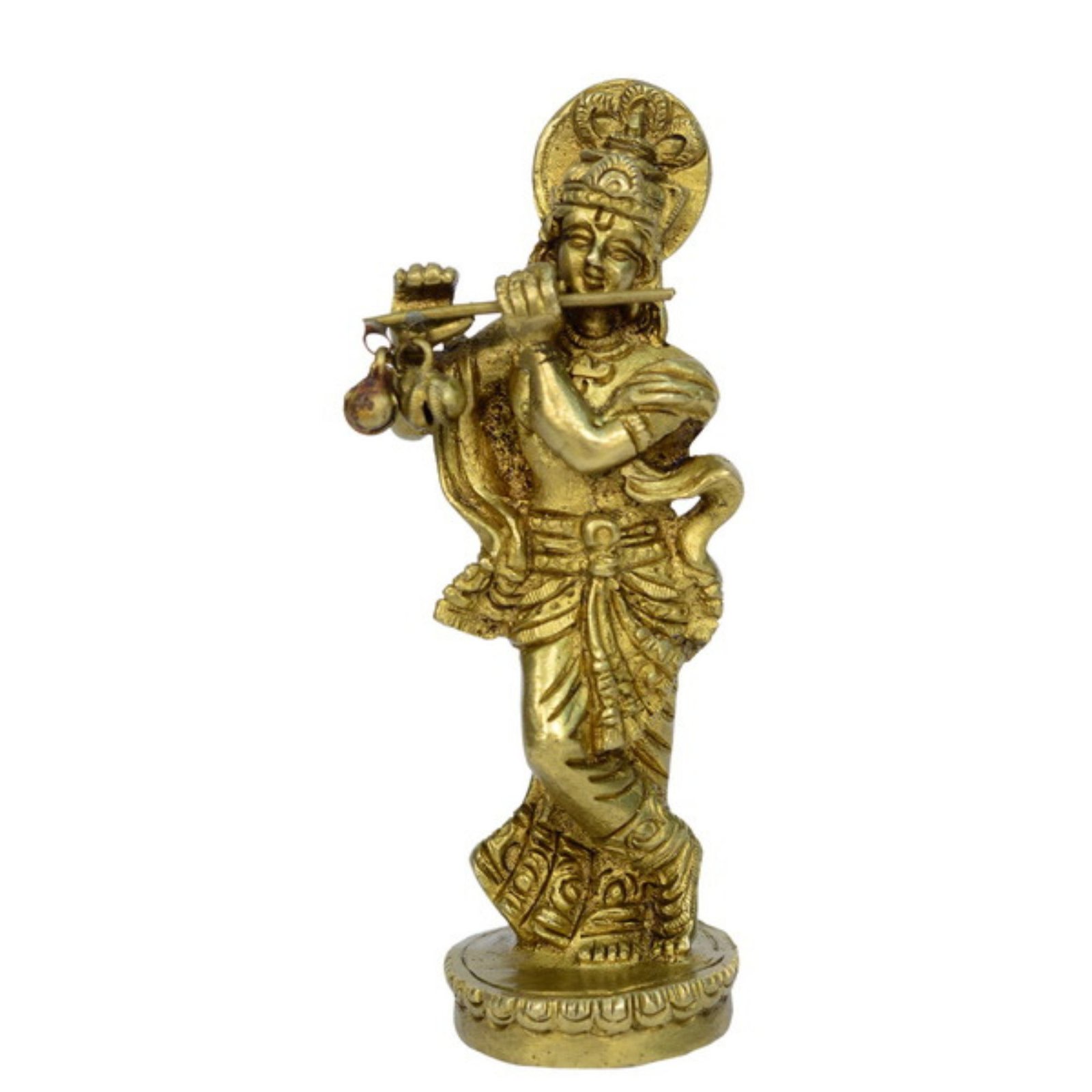 - Brass Standing Krishna Playing Flute Idol Best Gift HANDICRAFT ART BY BHARAT HAAT.