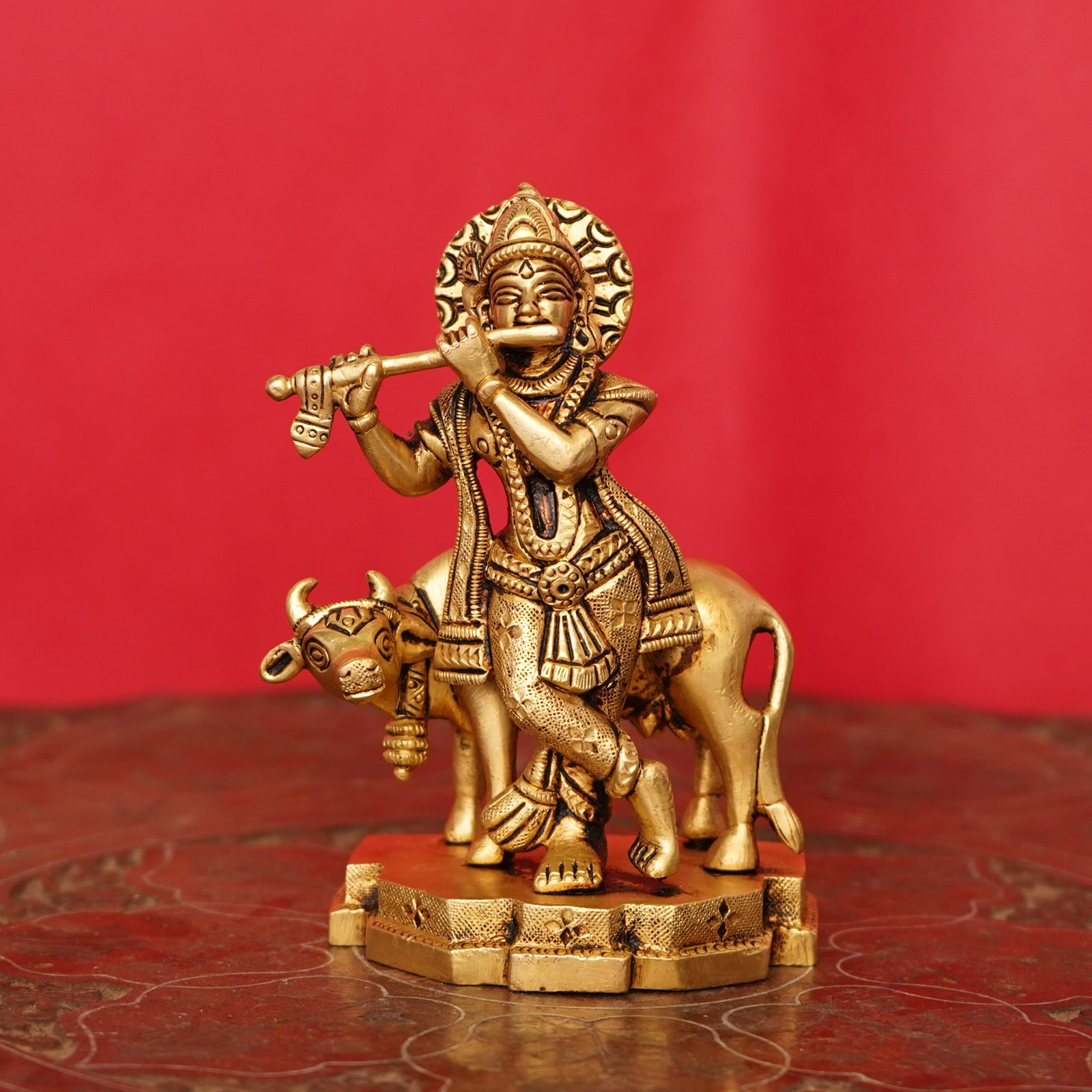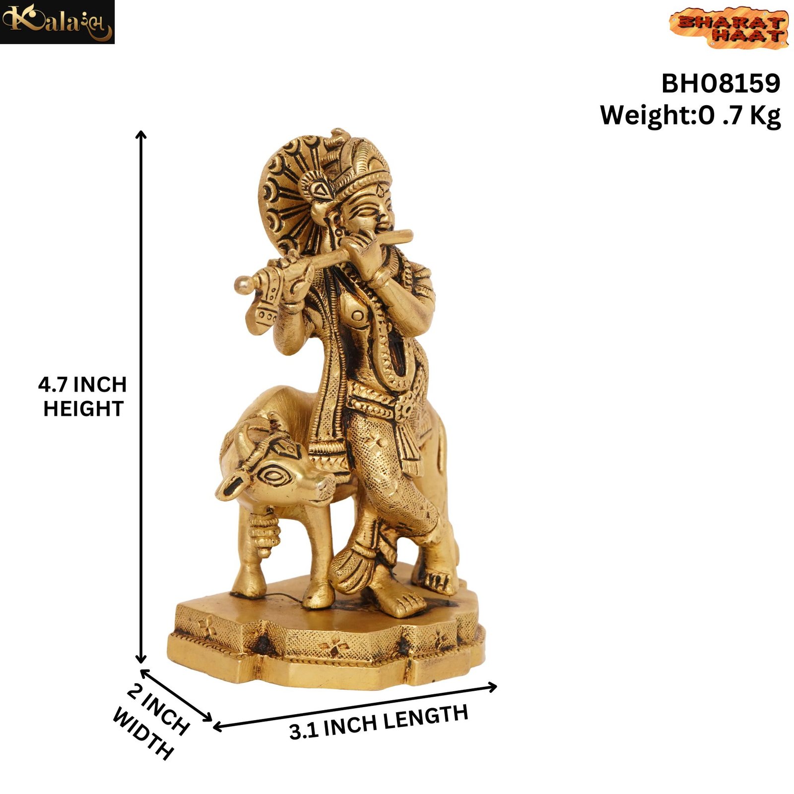 Krishna With Cow Brass For Collectible Handicraft Art By BHARATHAAT