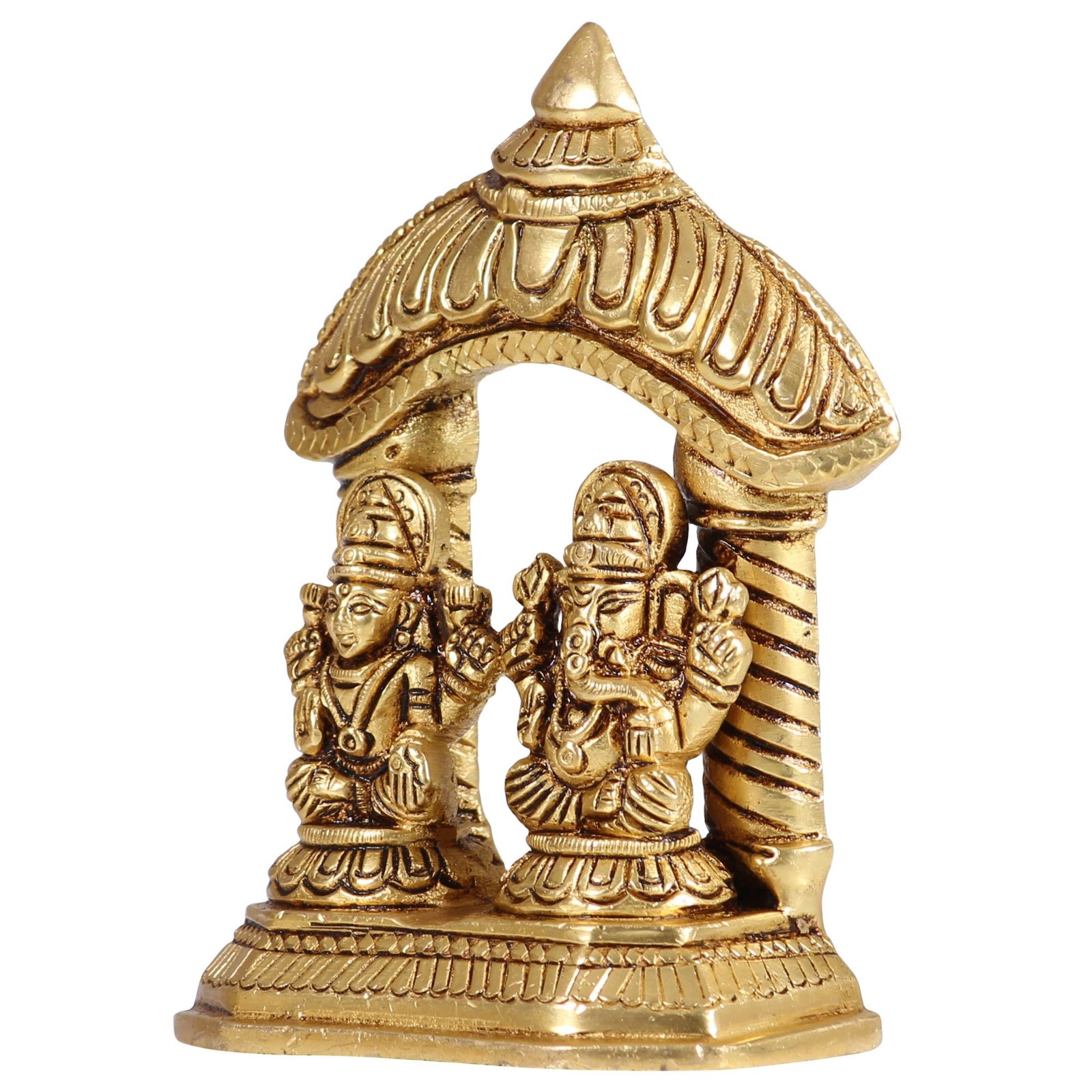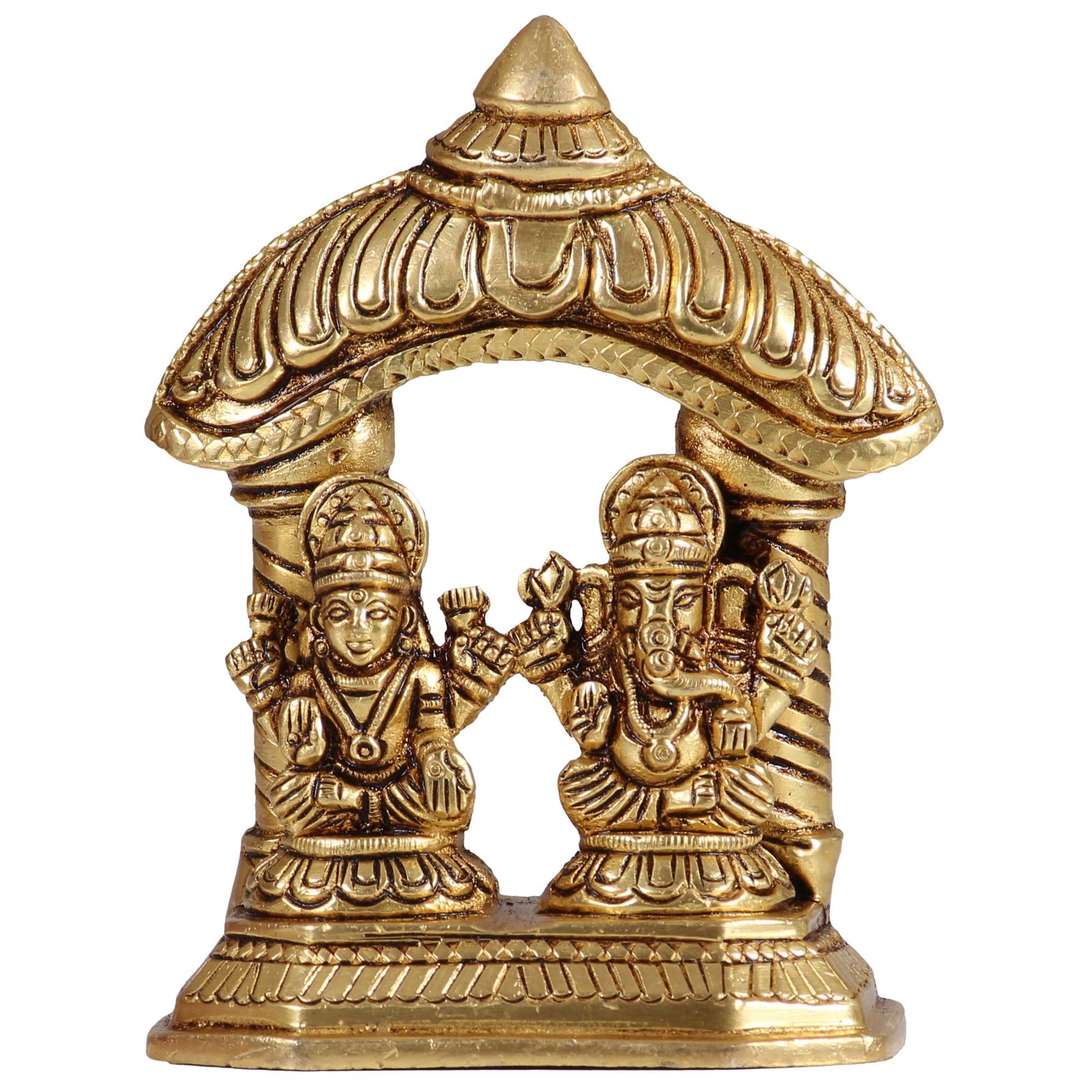 - Brass Ganesh Laxmi Sitting on Bajath Ganesh Bhagwan Lakshmi Ji Murti for Home Statue for Pooja Puja HANDICRAFT ART BY BHARAT HAAT