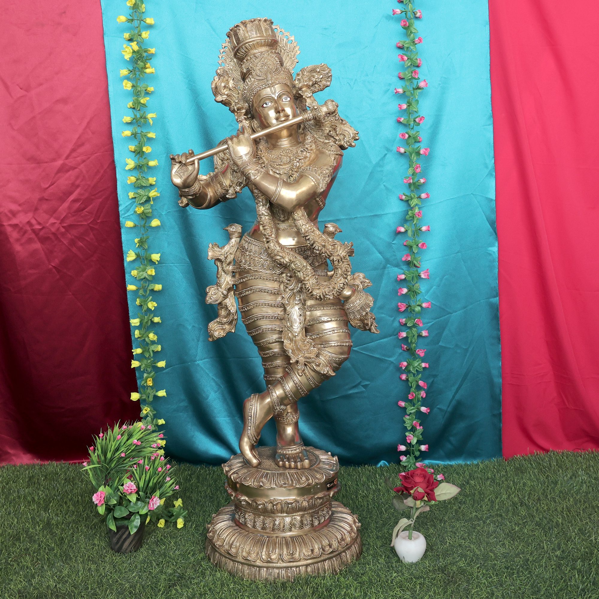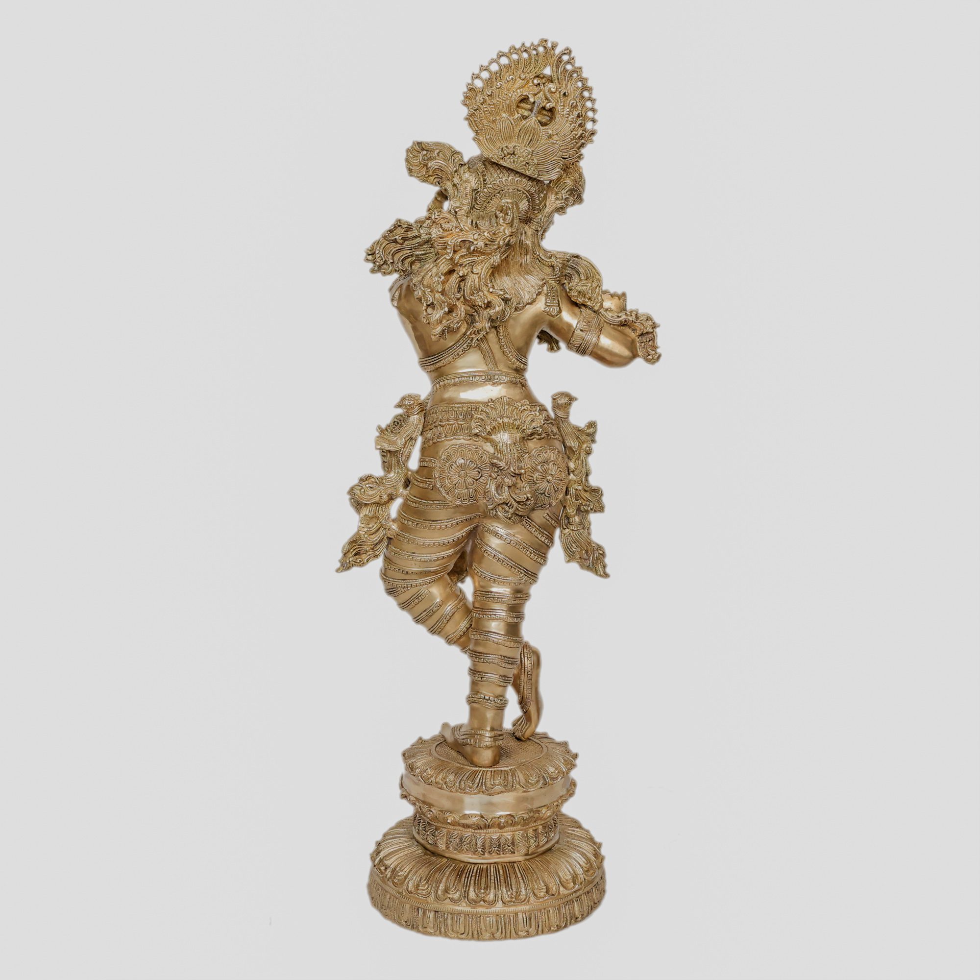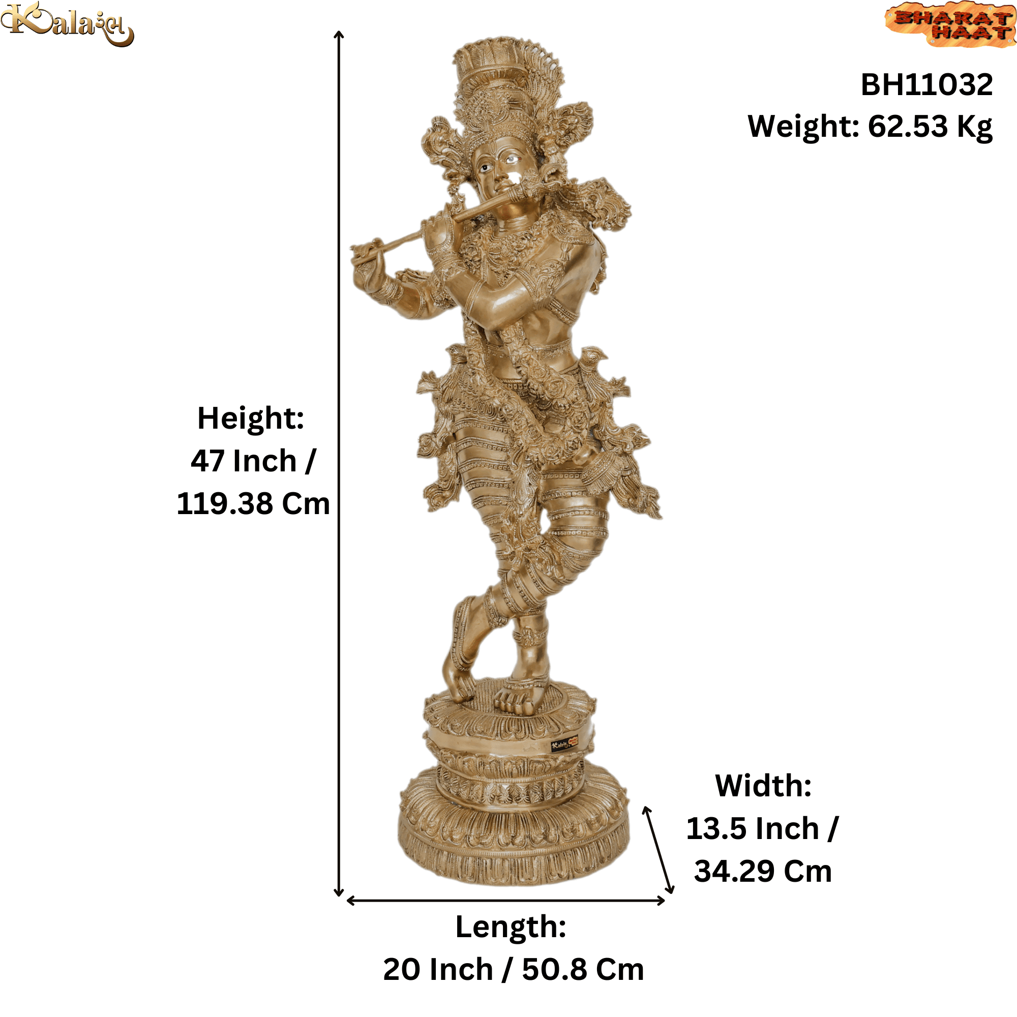 Brass Krishna Idol – 47 Inch Life-Size Standing Murti for Temple & Luxury Décor (62.53 Kg)