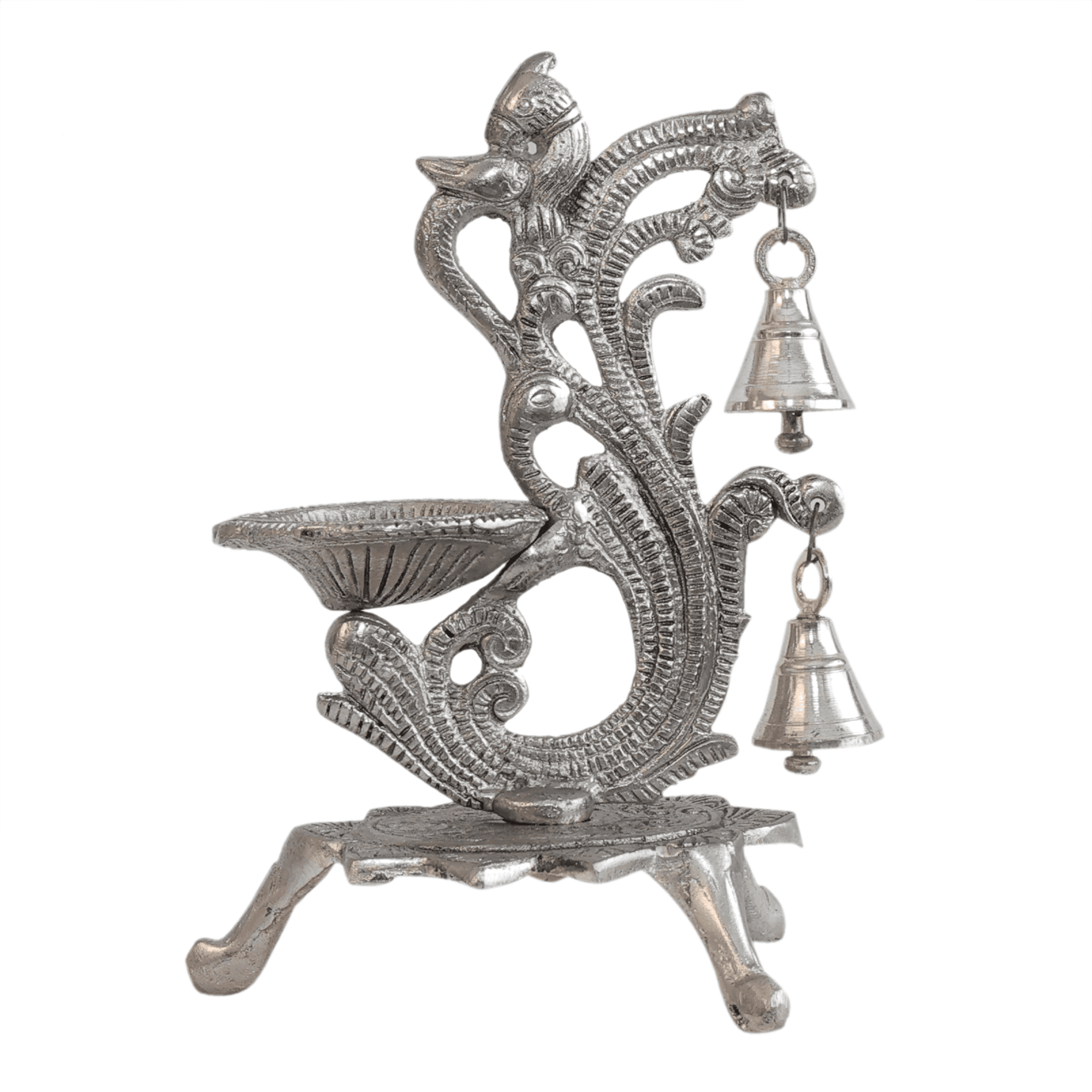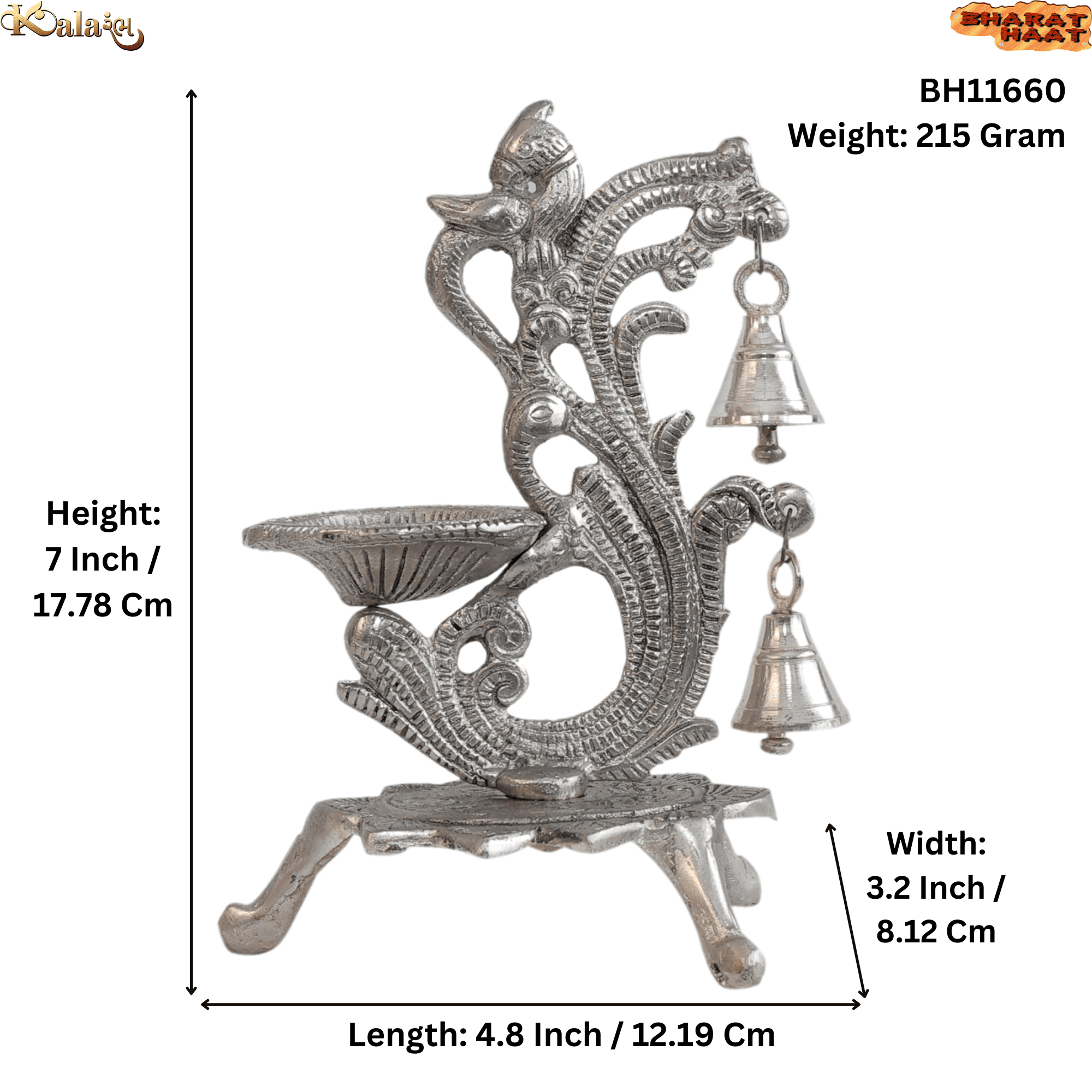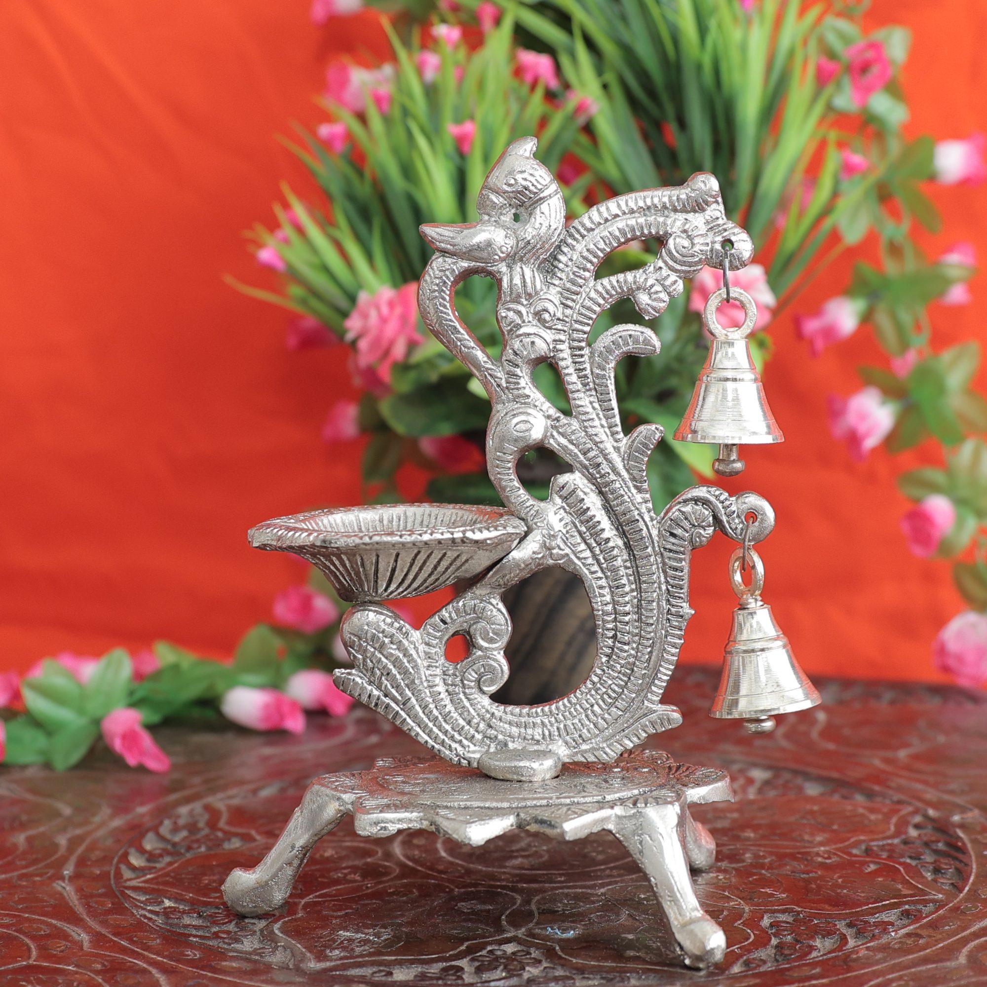 Metal Peacock Diya – Traditional Oil Lamp for Pooja & Home Décor