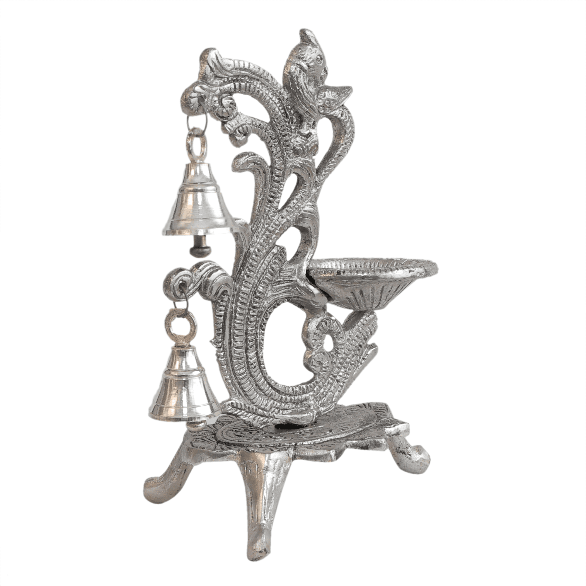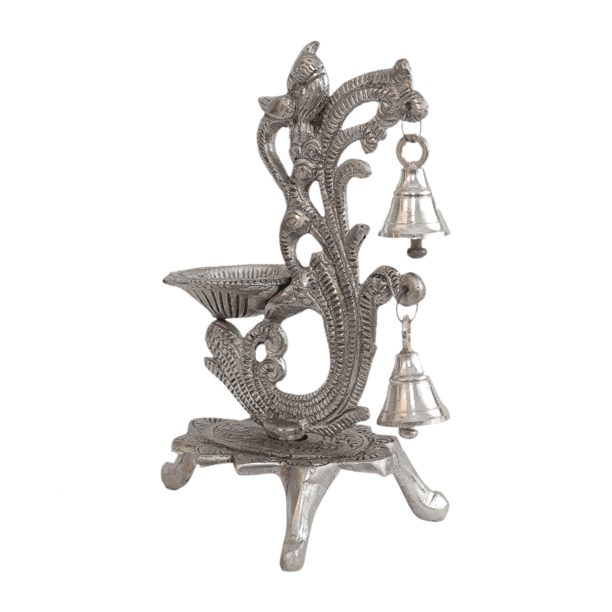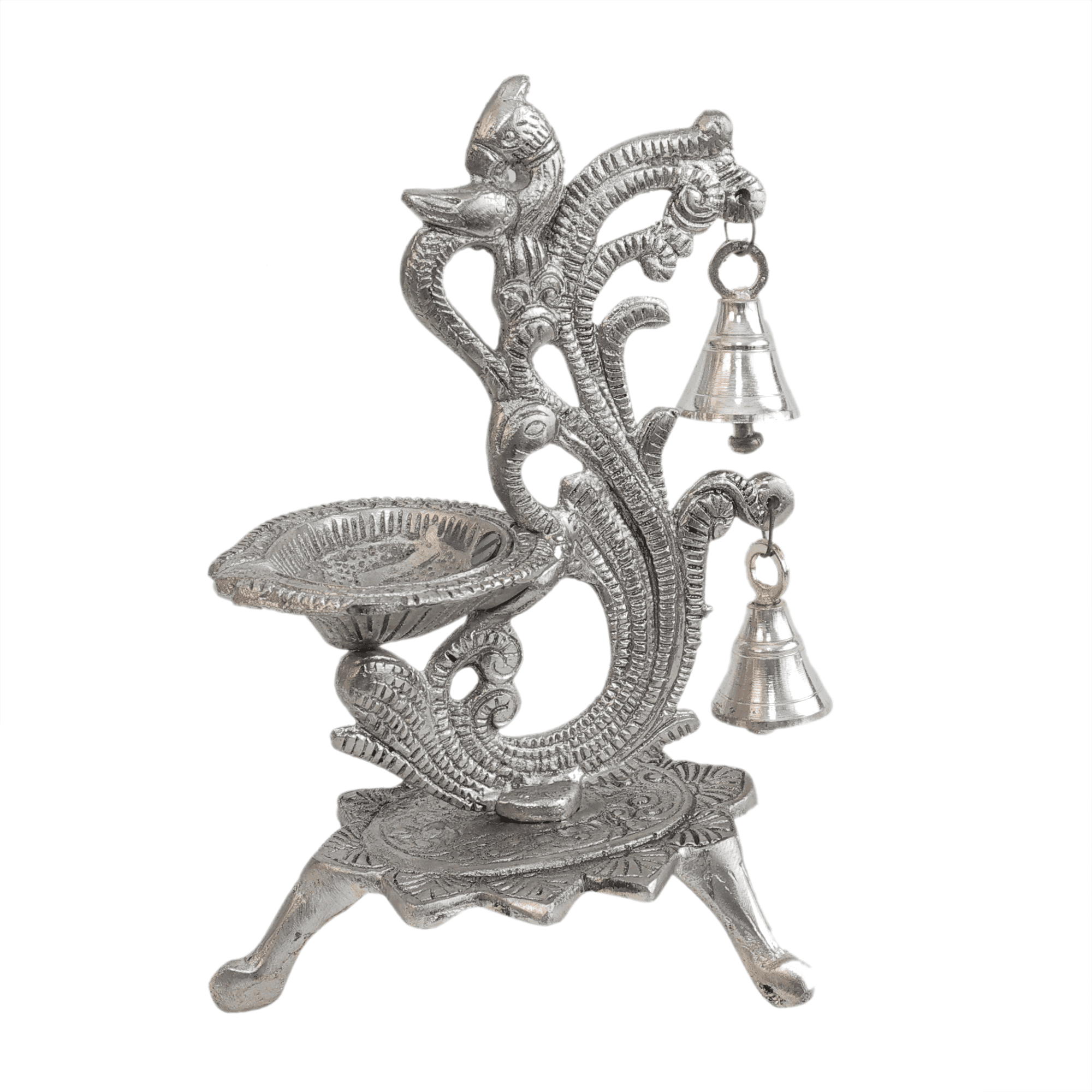 Metal Peacock Diya – Traditional Oil Lamp for Pooja & Home Décor