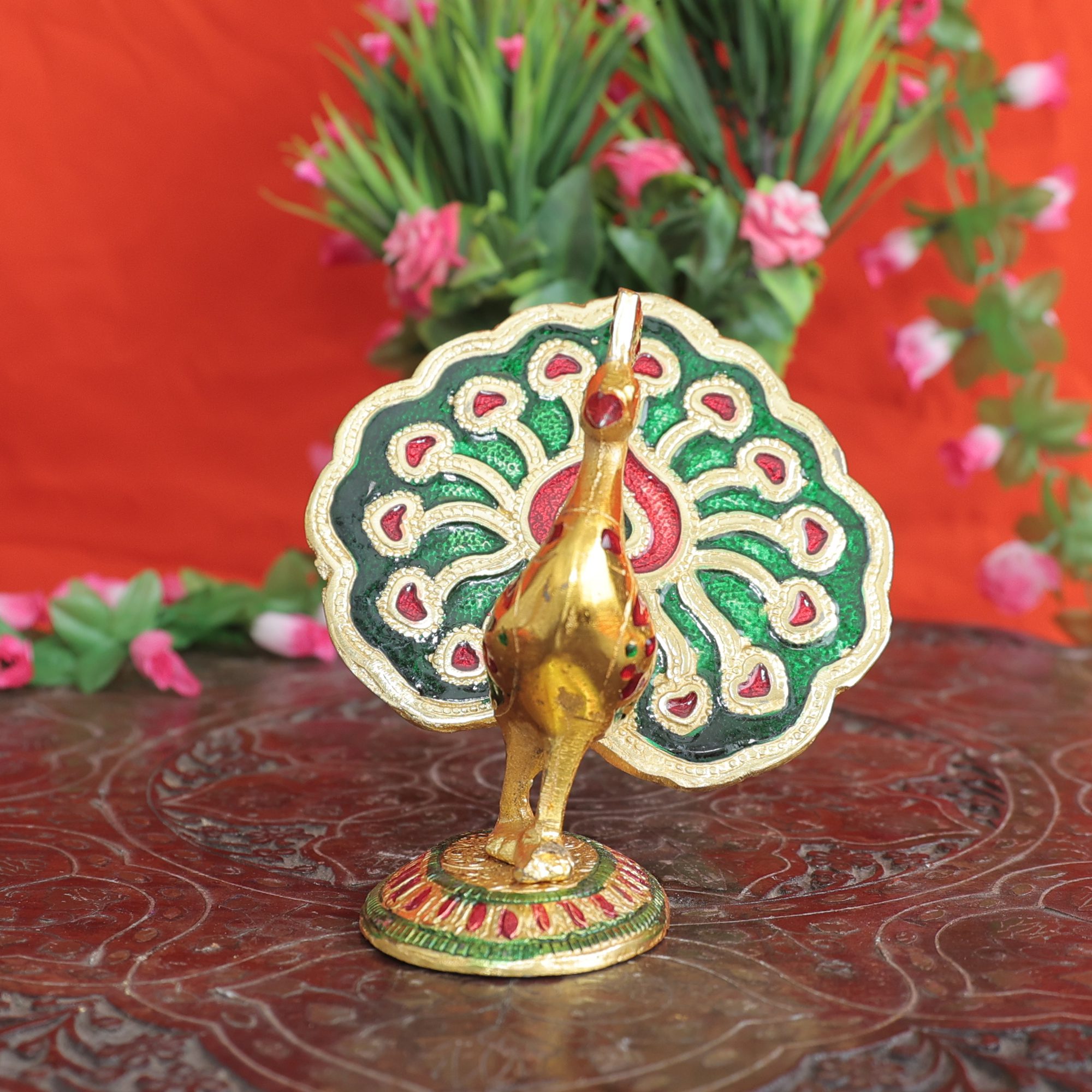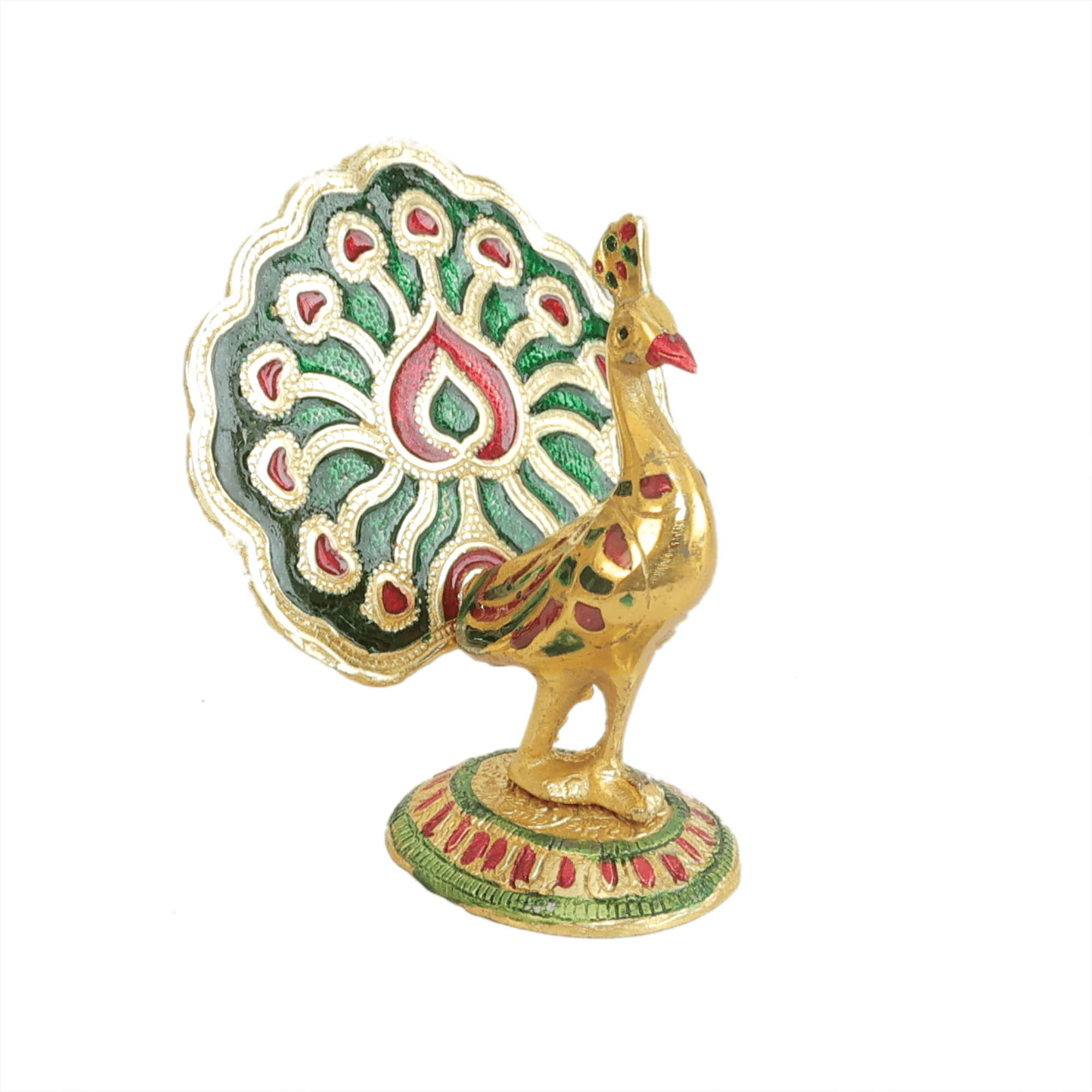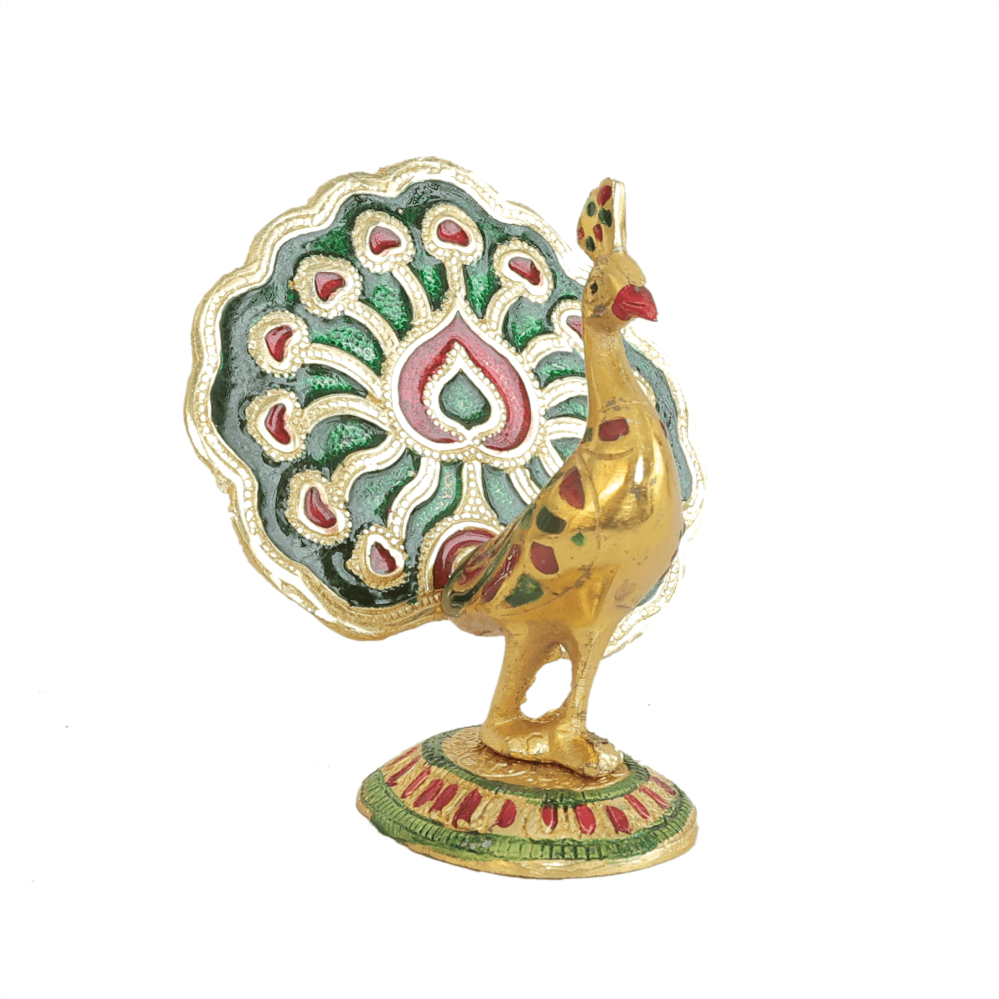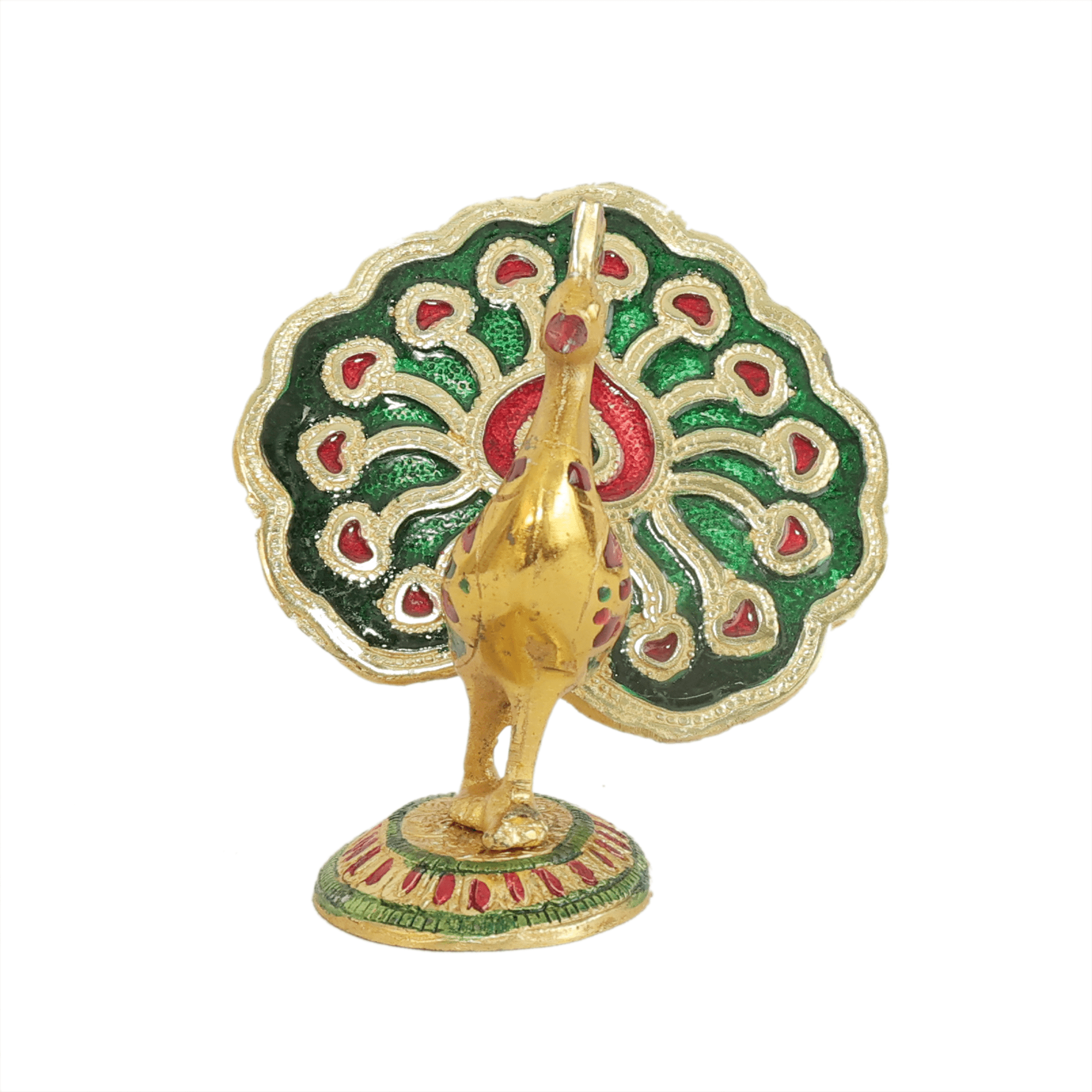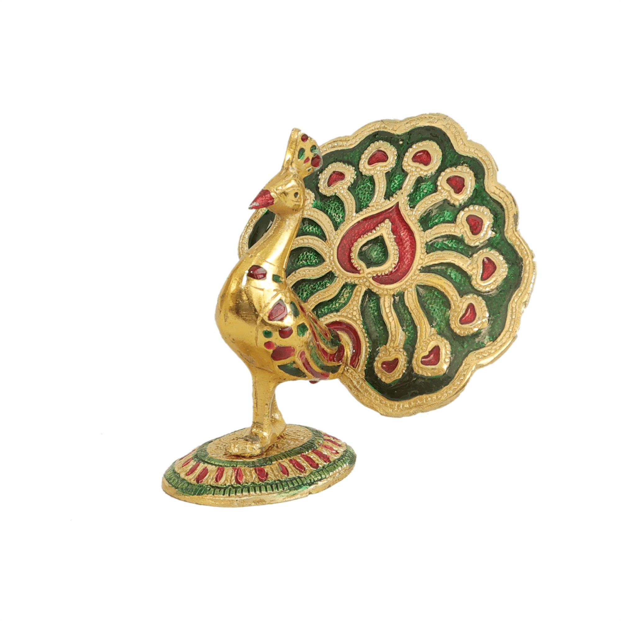 Perfect for placement in your living room, pooja area, office desk, or shelf, this peacock statue enhances the aesthetic appeal of any space while radiating charm and cultural richness. Its compact size makes it versatile for both decorative display and gifting purposes.