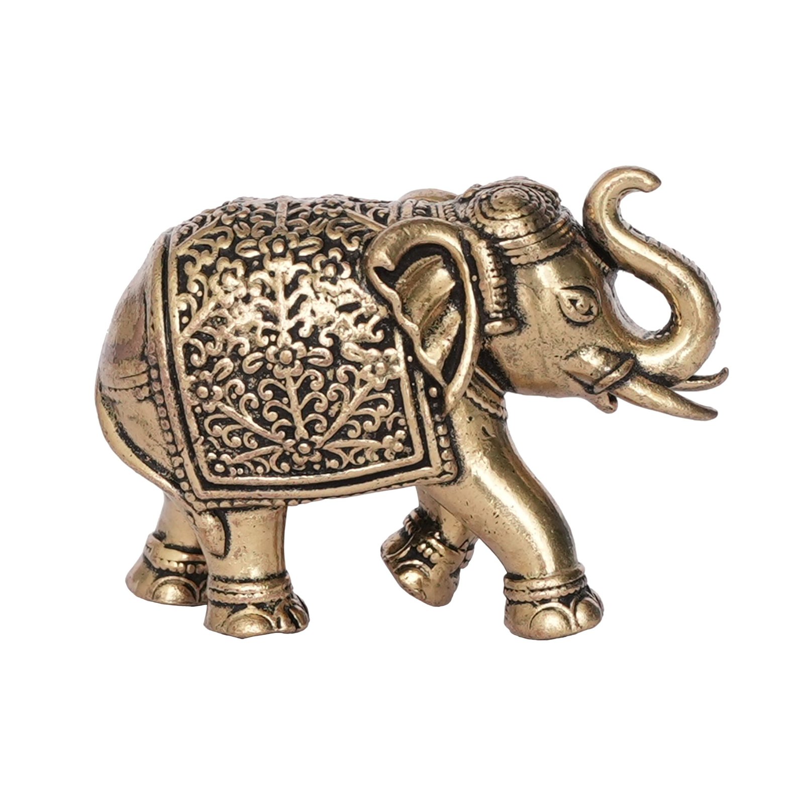 Introduce the auspicious presence of the elephant, a symbol of strength and wisdom, into your life with this Miniature Brass Elephant Statue. Perfect for small spaces and as a meaningful gift, this exquisite piece adds a touch of elegance and positivity wherever it is placed. Order now to bring the power and charm of the elephant to your space!