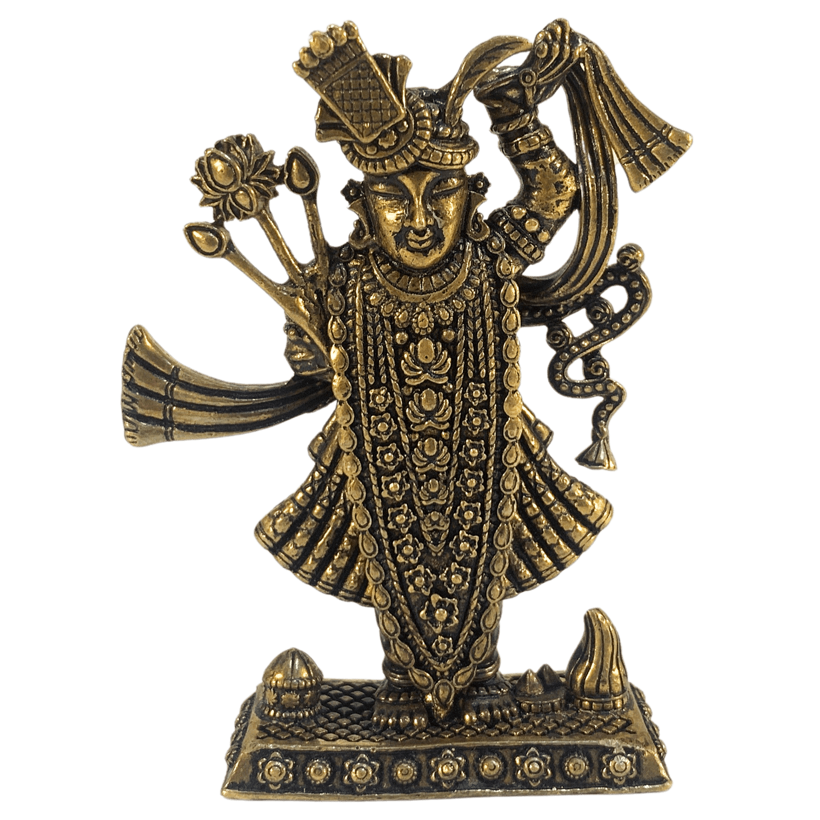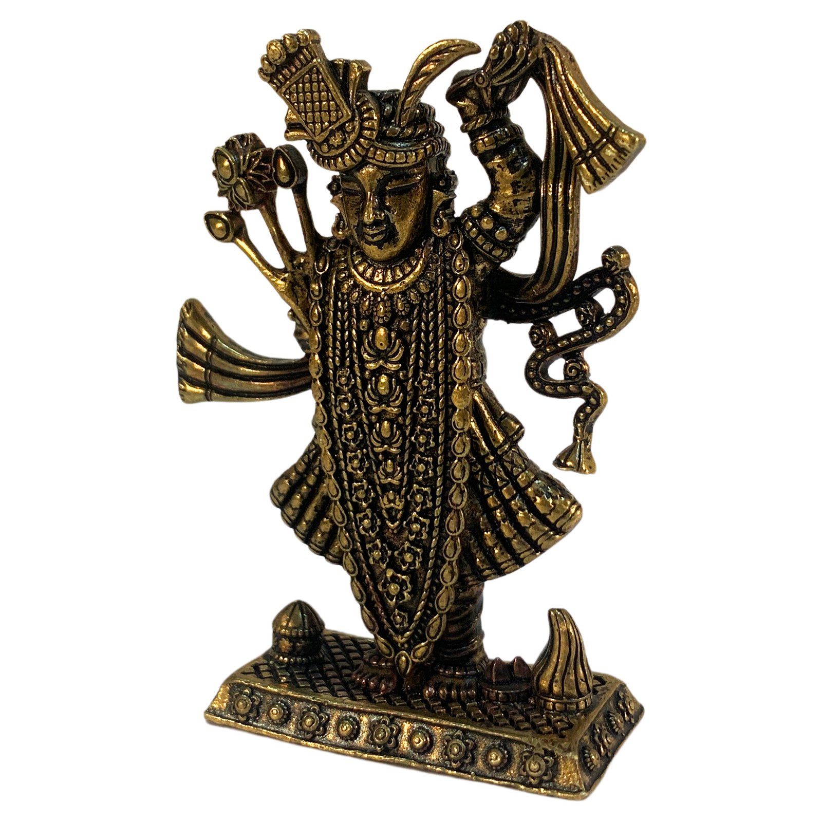 Bring the divine grace and blessings of Shreenathji into your home with this beautifully crafted brass statue. Perfect for adding a touch of spirituality and traditional charm to your space. Order now to enrich your surroundings with divine grace!