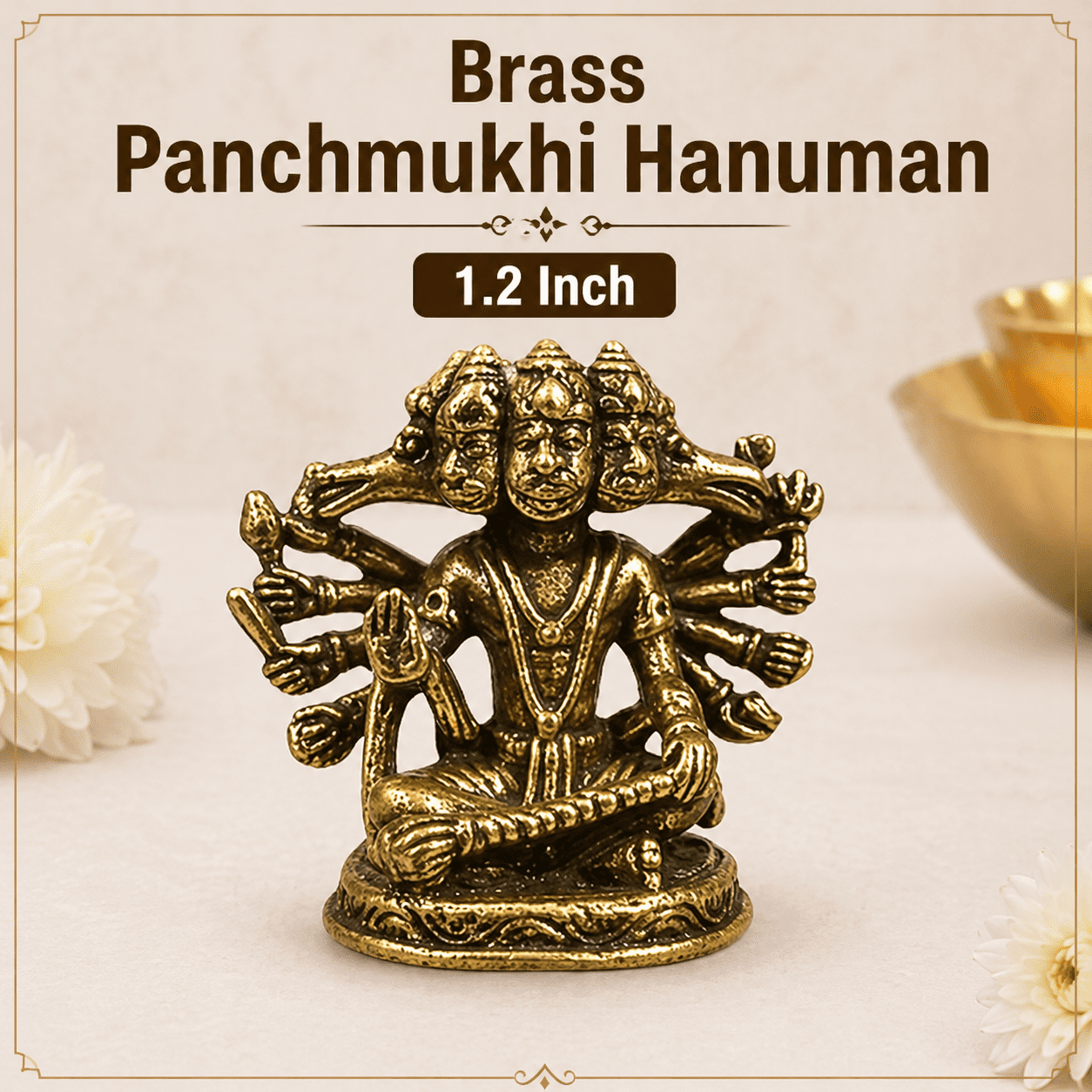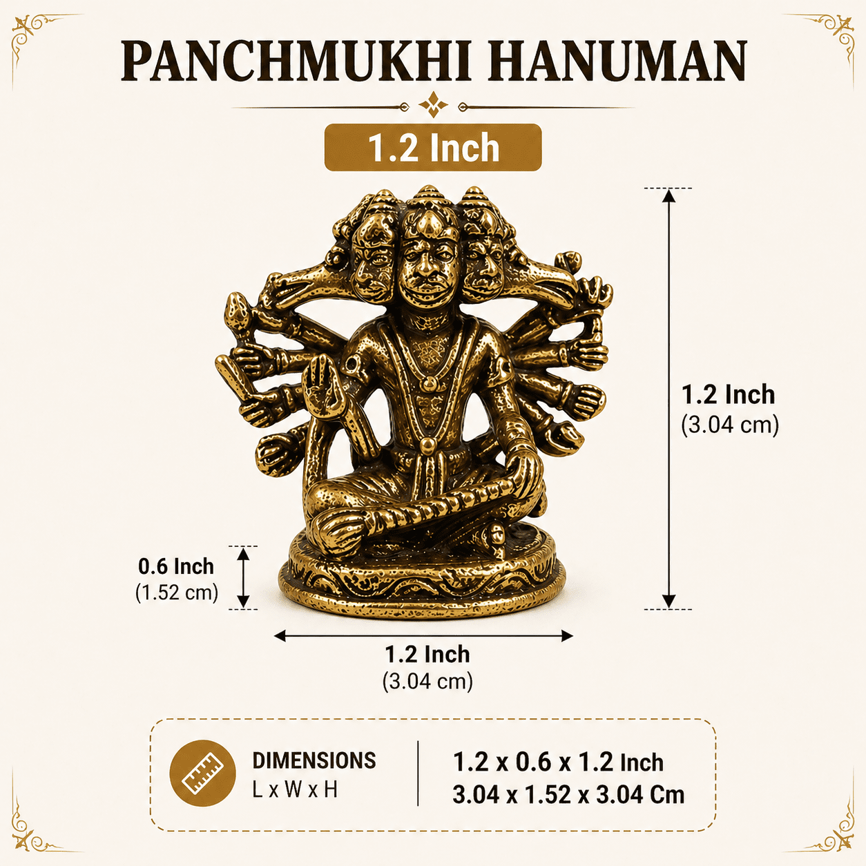 Panchmukhi Hanuman 1.2 Inch Statue Invite divine protection and powerful positive energy into your life with. Beautifully crafted from premium quality brass, this mini Panchmukhi Hanuman idol represents strength, courage, protection, and spiritual power. The five faces of Lord Hanuman symbolize different directions and energies, offering complete protection from negative influences.