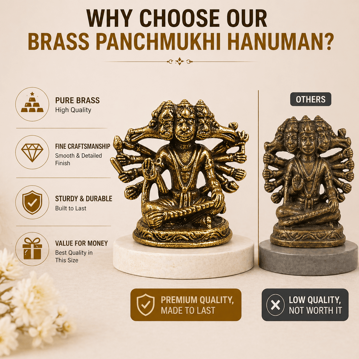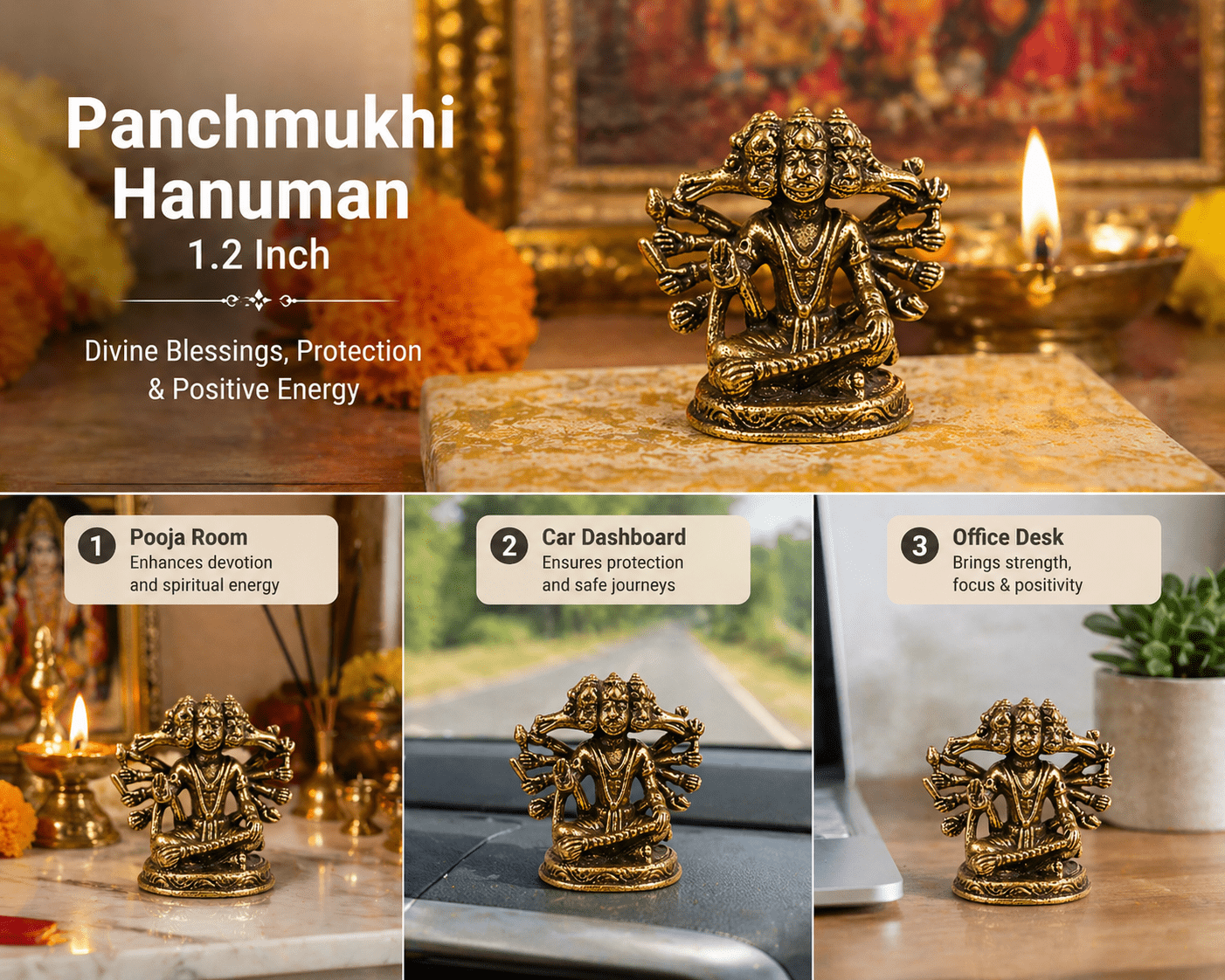 Whether you are looking for a Hanuman idol for car dashboard, a spiritual decor piece, or a powerful symbol of protection, this mini brass Panchmukhi Hanuman statue is the perfect choice. Bring home divine strength, remove negativity, and experience peace and positivity every day.