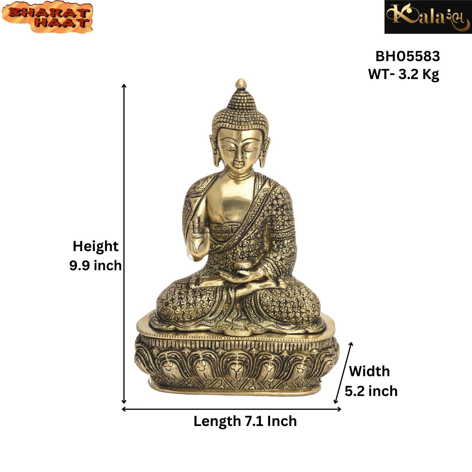 - Brass Lord Gautam Buddha Statue Big Size Idols Decorative Showpiece Sitting Life Story Engraved Carving Work Jain Idol Murti Home Office Entrance Decor Pooja Best for Gift Showpiece HANDICRAFT ART BY BHARAT HAAT
